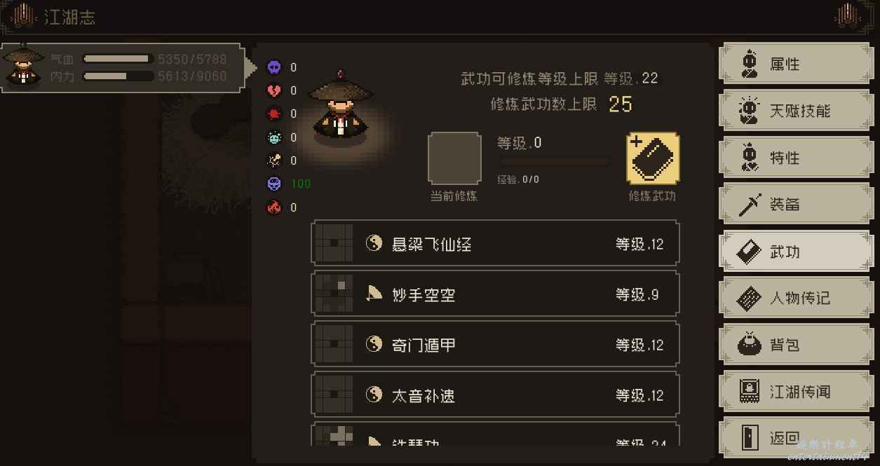 所以從25降到5道德的玩法,我覺得還是有可能的,5道德有2本秘籍加的攻擊非常多,我覺得最高攻擊還能突破120,就是暴雨梨花、穿心極樂蜈蚣爪,有這兩本,至少還多100攻擊。