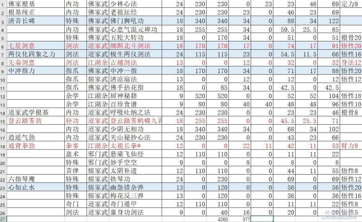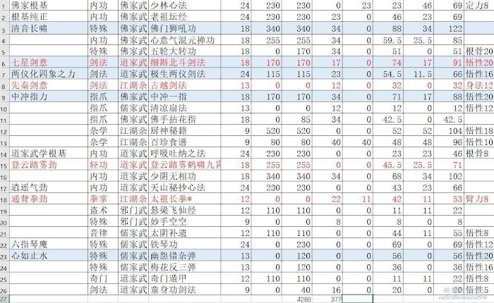 一共26功法,但是童子劍法和踩腳只可以刪除,所以根骨25就夠了。