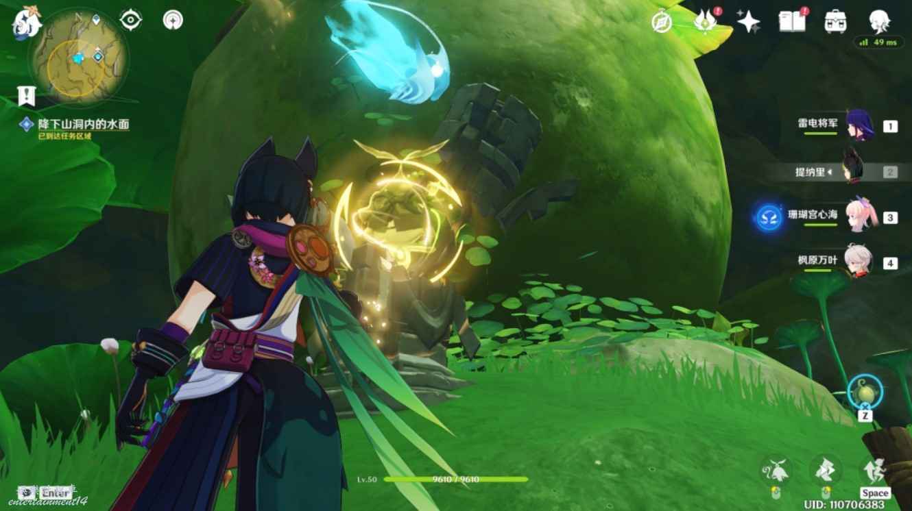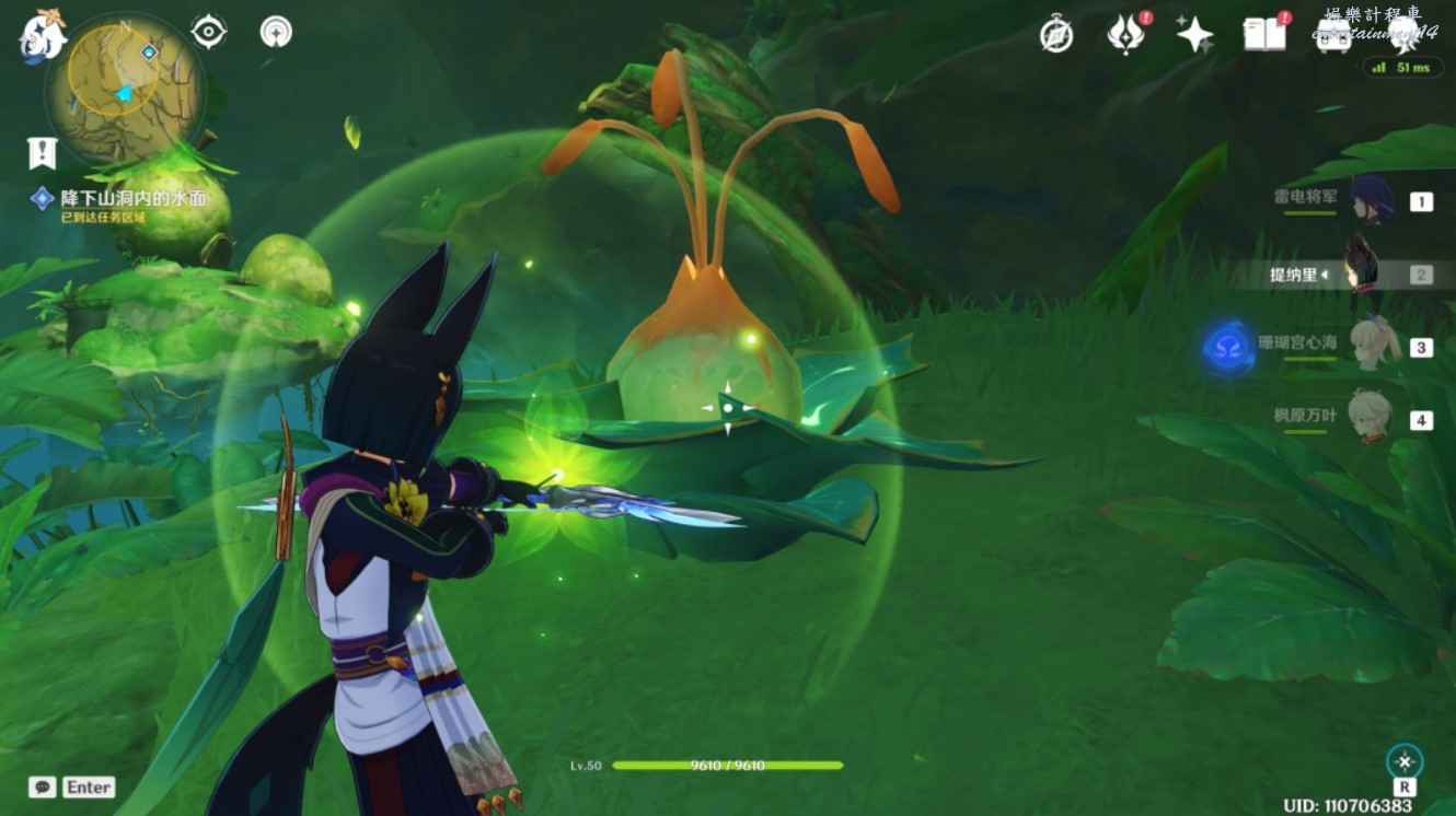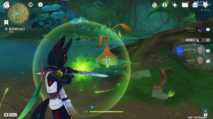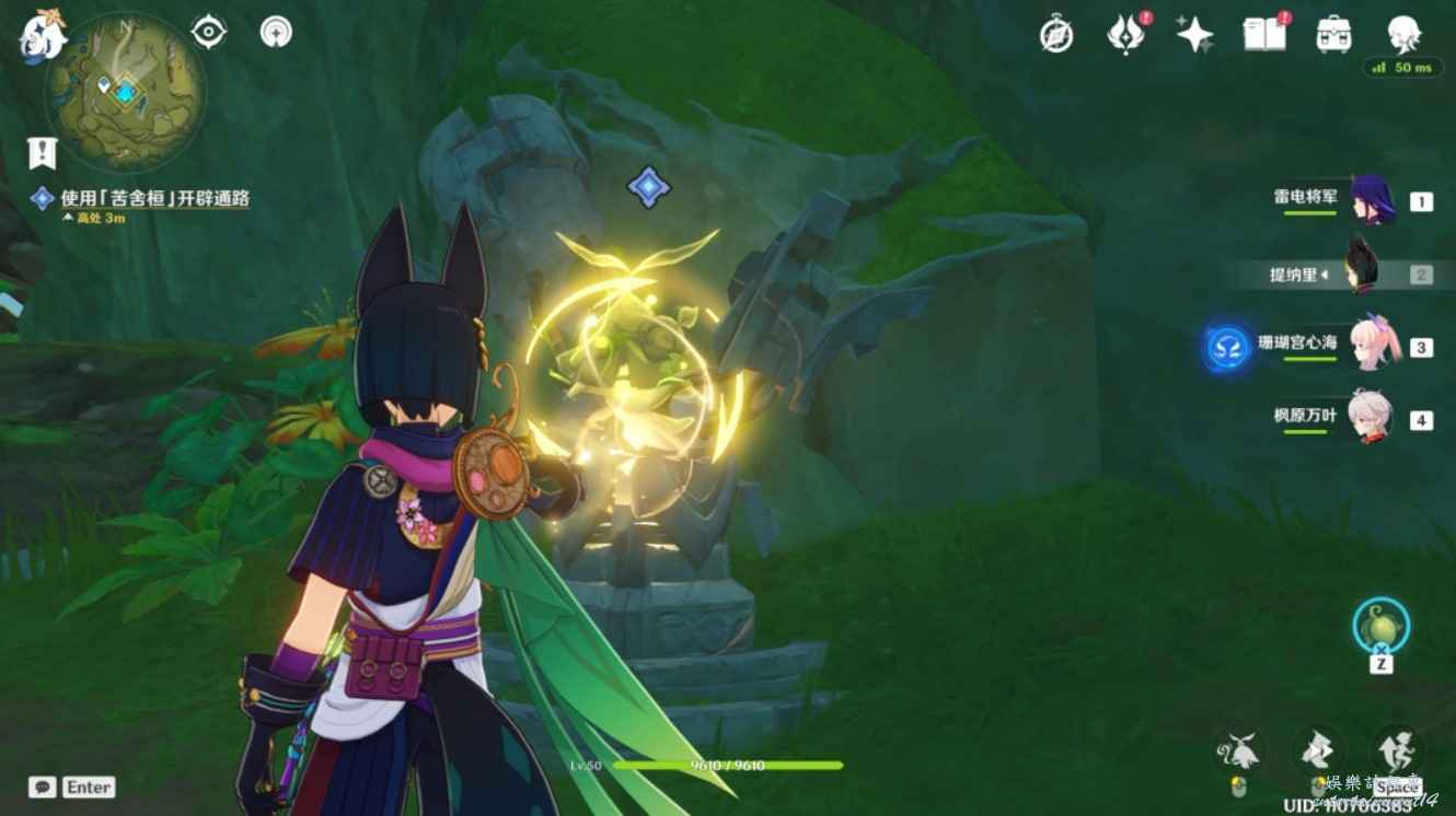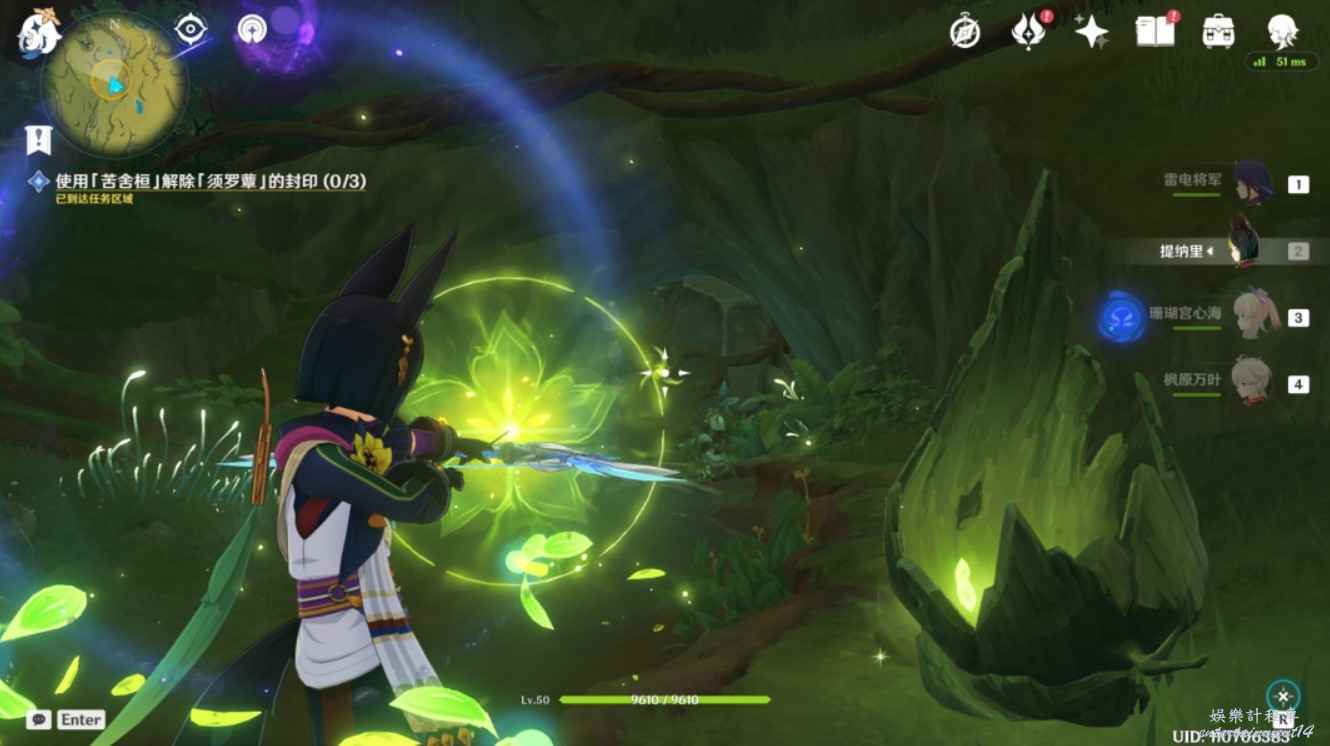 先用草元素攻擊一下這個,啟動四葉印快速到達湖中心的小島