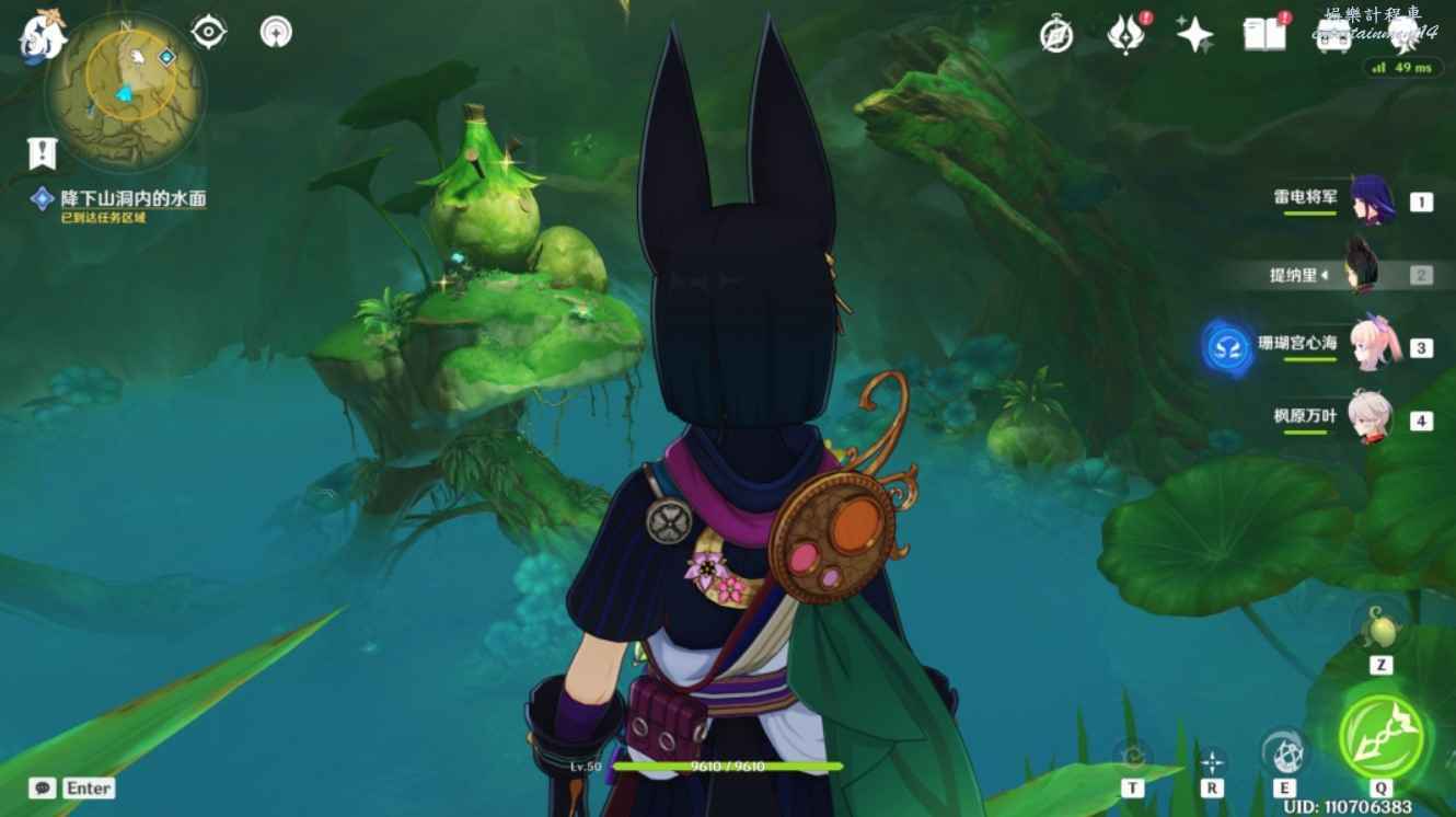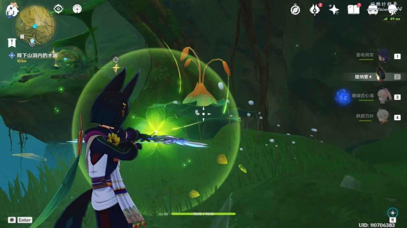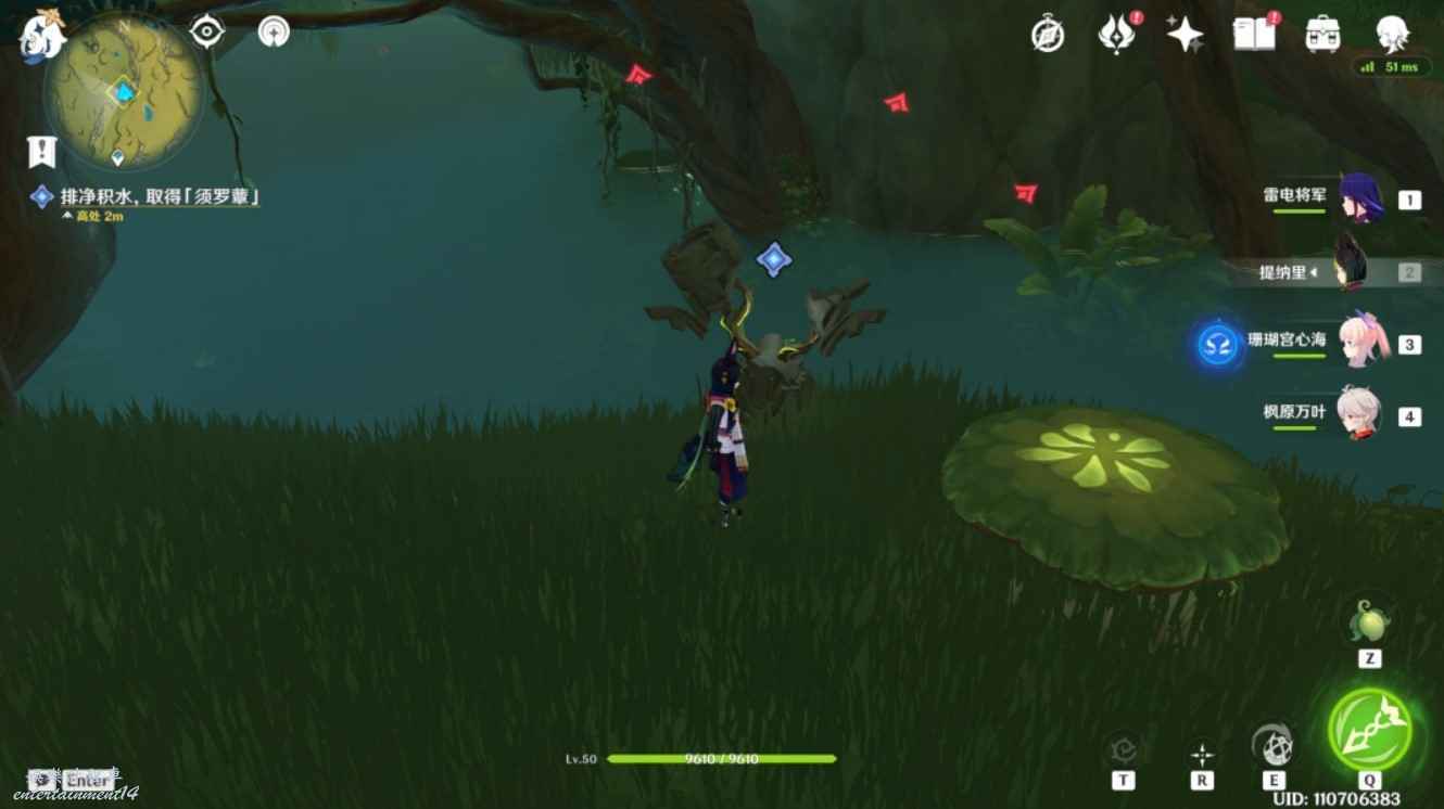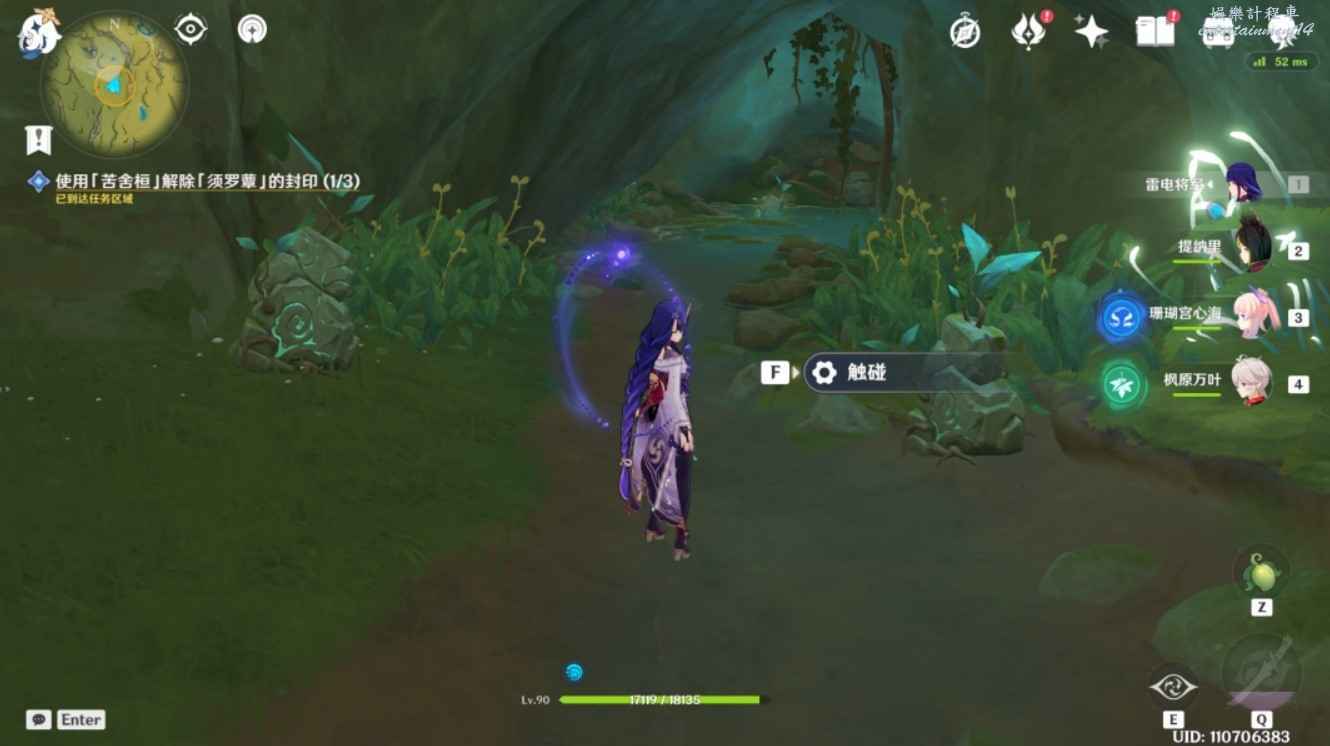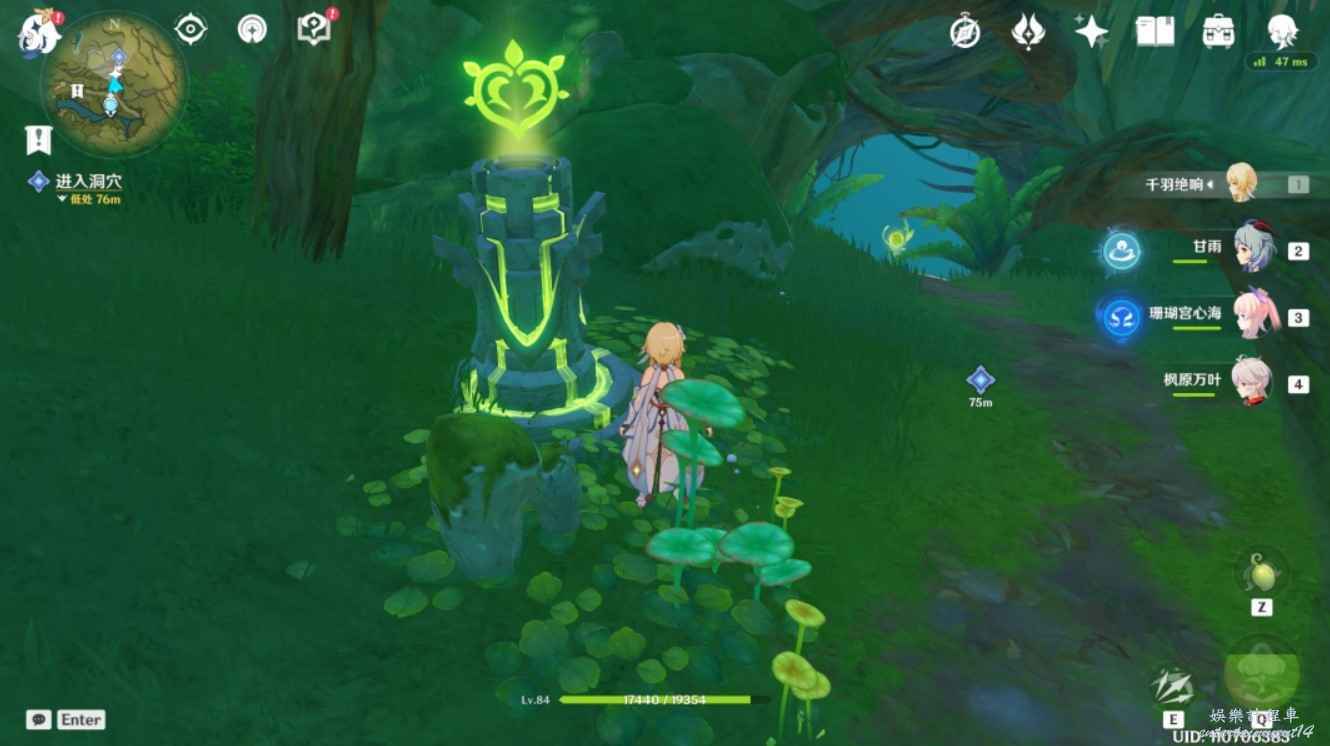 先用草元素攻擊一下這個,啟動四葉印快速到達湖中心的小島