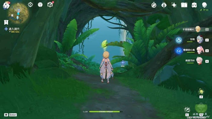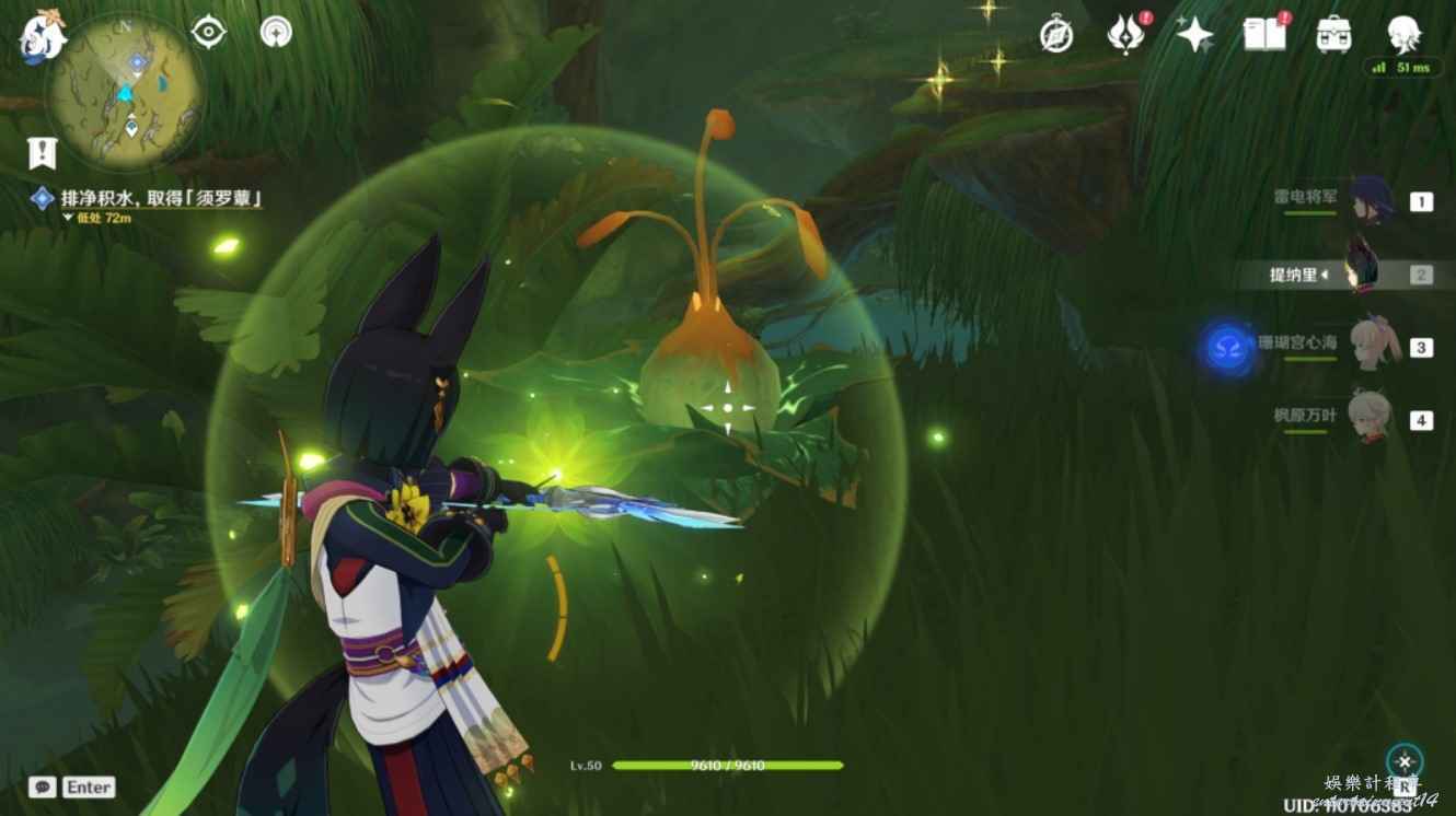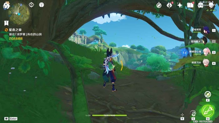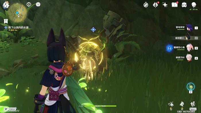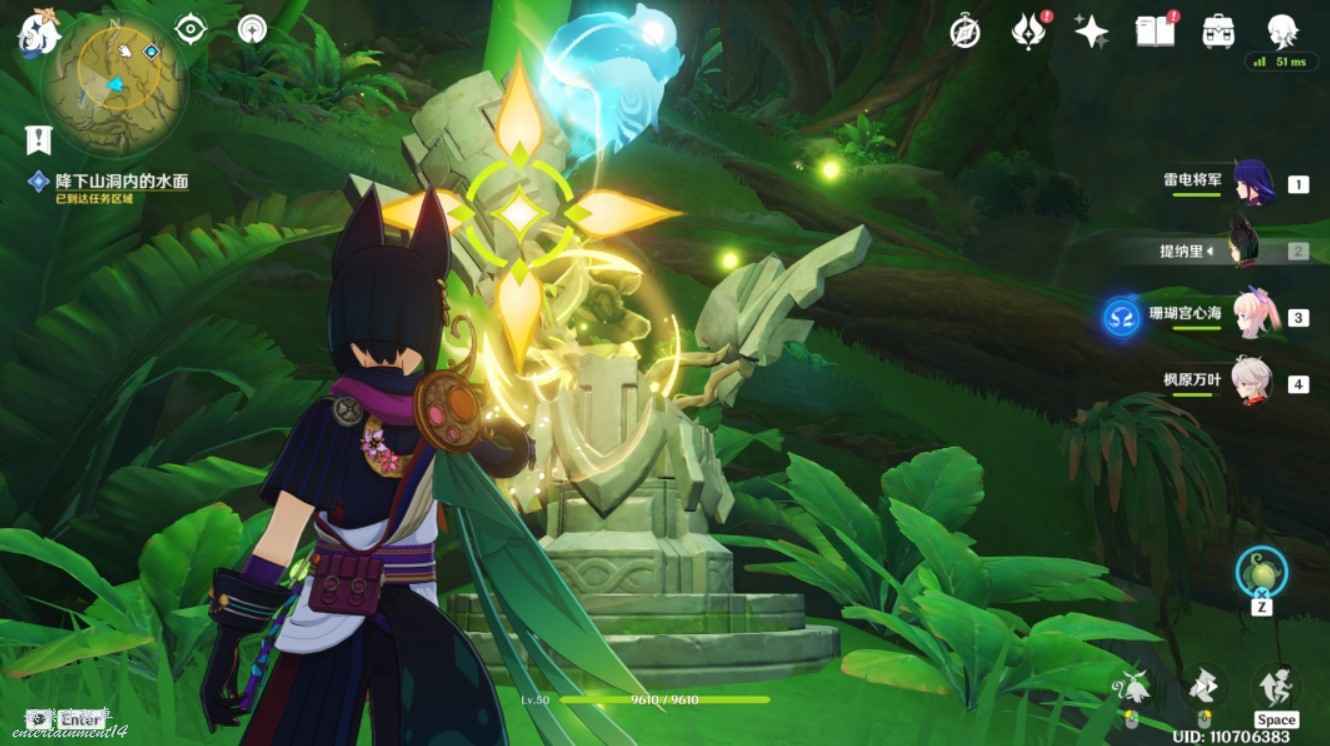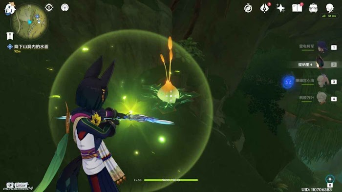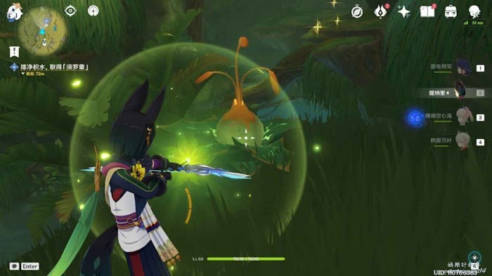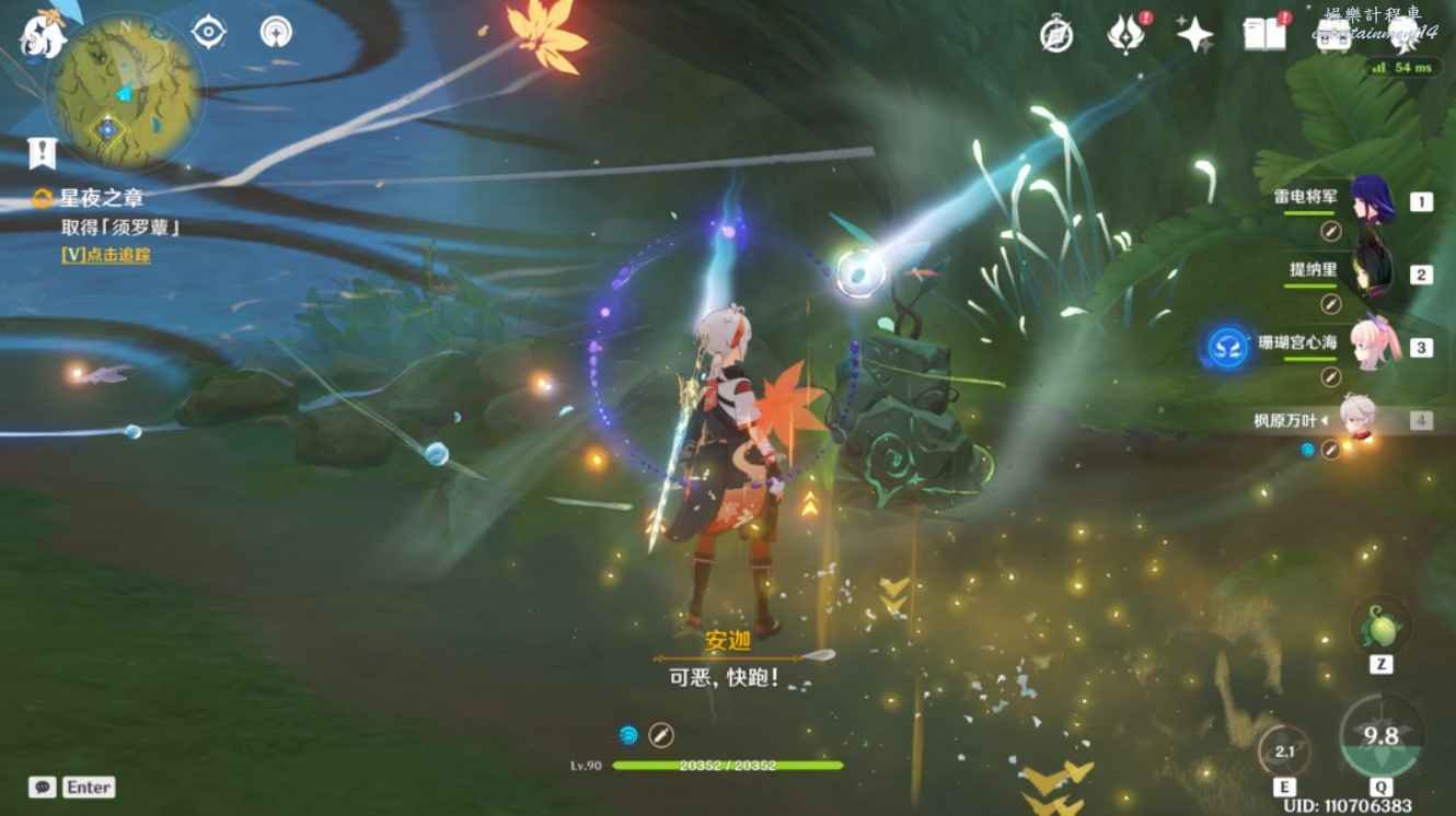 先用草元素攻擊一下這個,啟動四葉印快速到達湖中心的小島