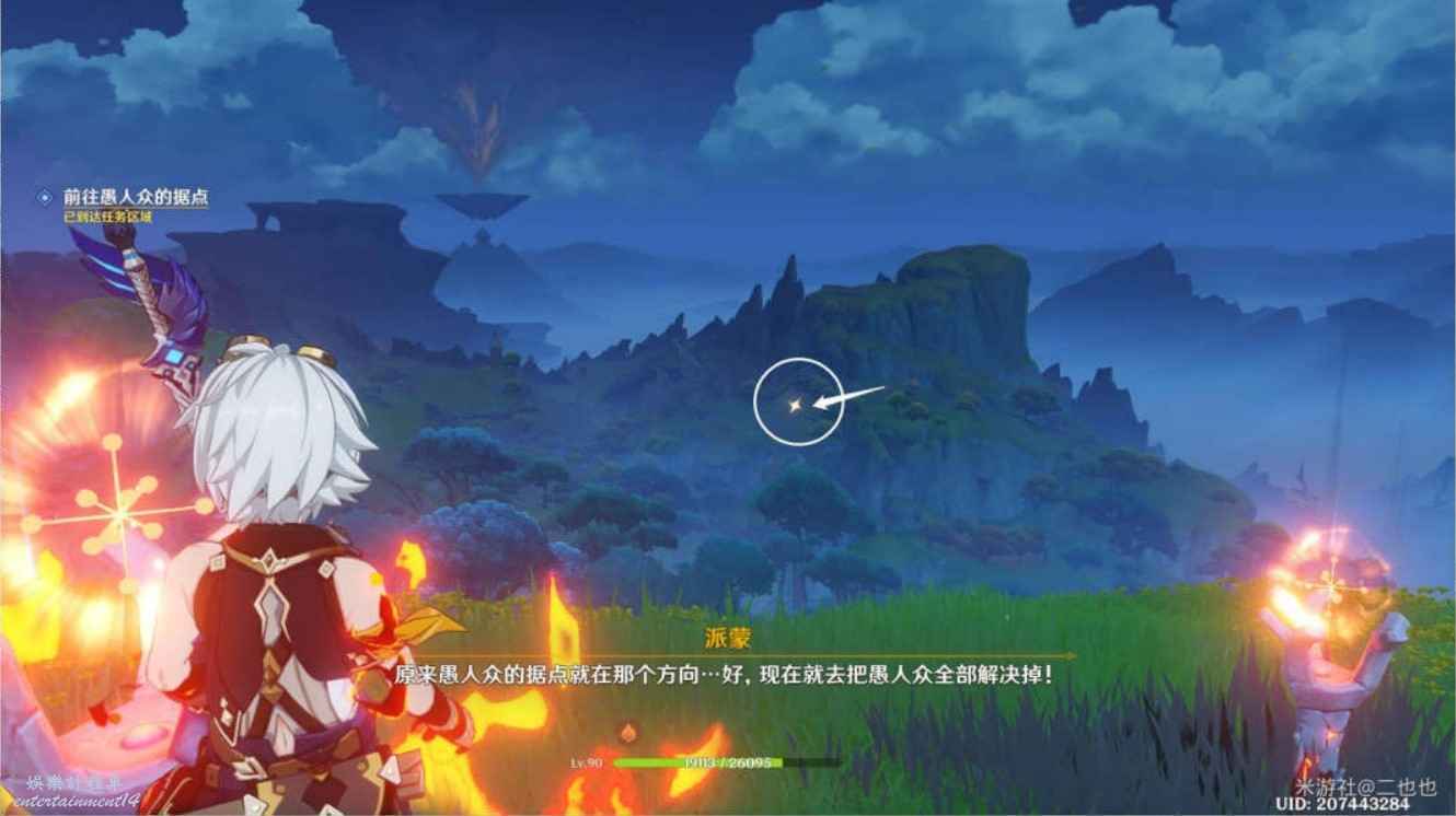 傳送圖中指引錨點,往地圖的東南方向飛,前往愚人眾的據點