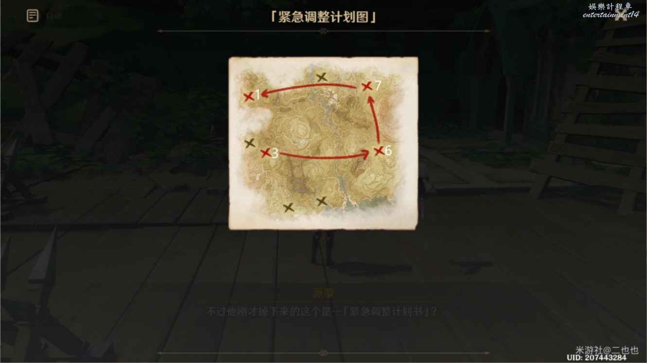 利用四葉印,飛到屋頂,前往圖中指引位置,與奧列格戰鬥,獲得「緊急調整計畫圖」
