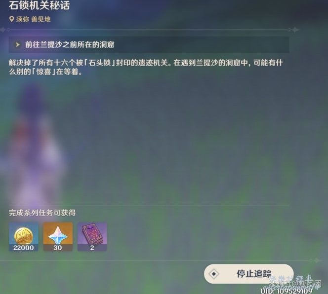 打敗無相鐵以後任務完成,這個石頭旁邊彈琴進入夢境,進入夢境以後分別和四個蘭那羅對話,再打四次恒常機關,獲得四個寶箱。