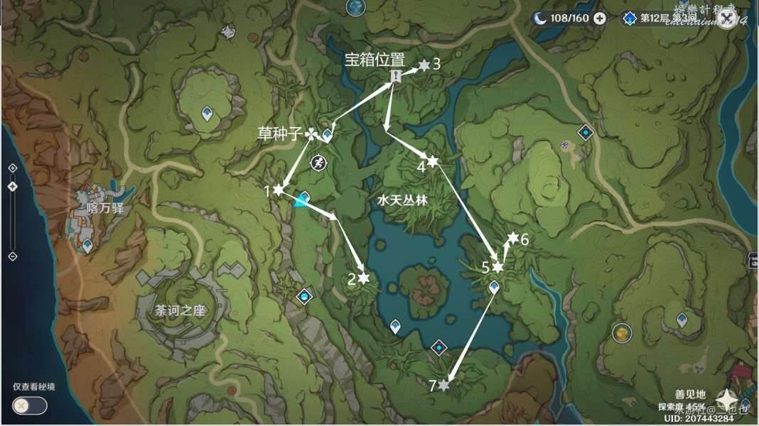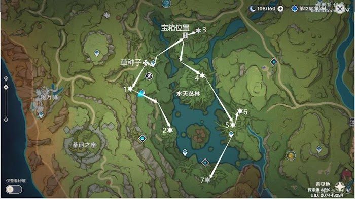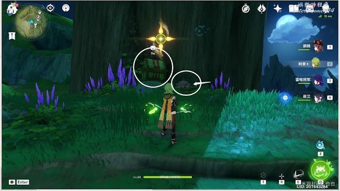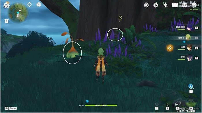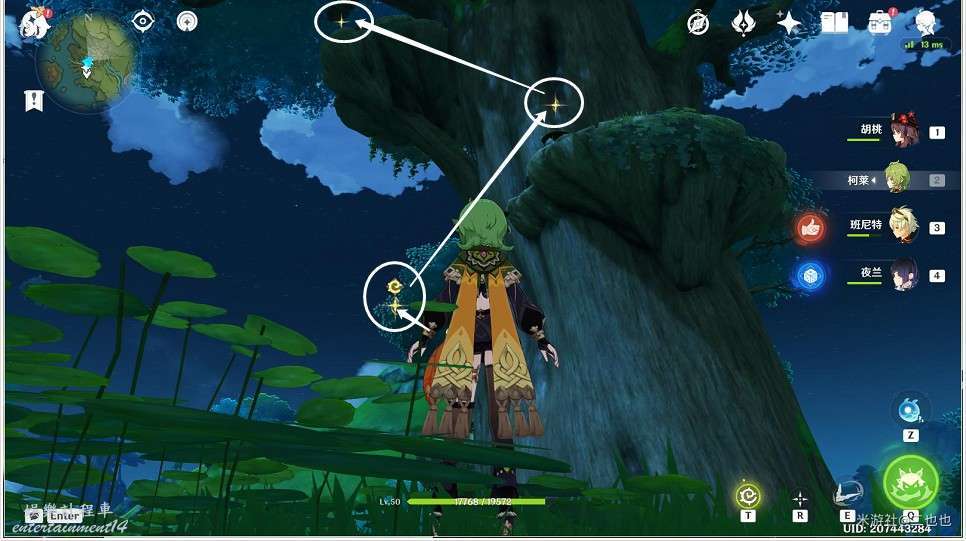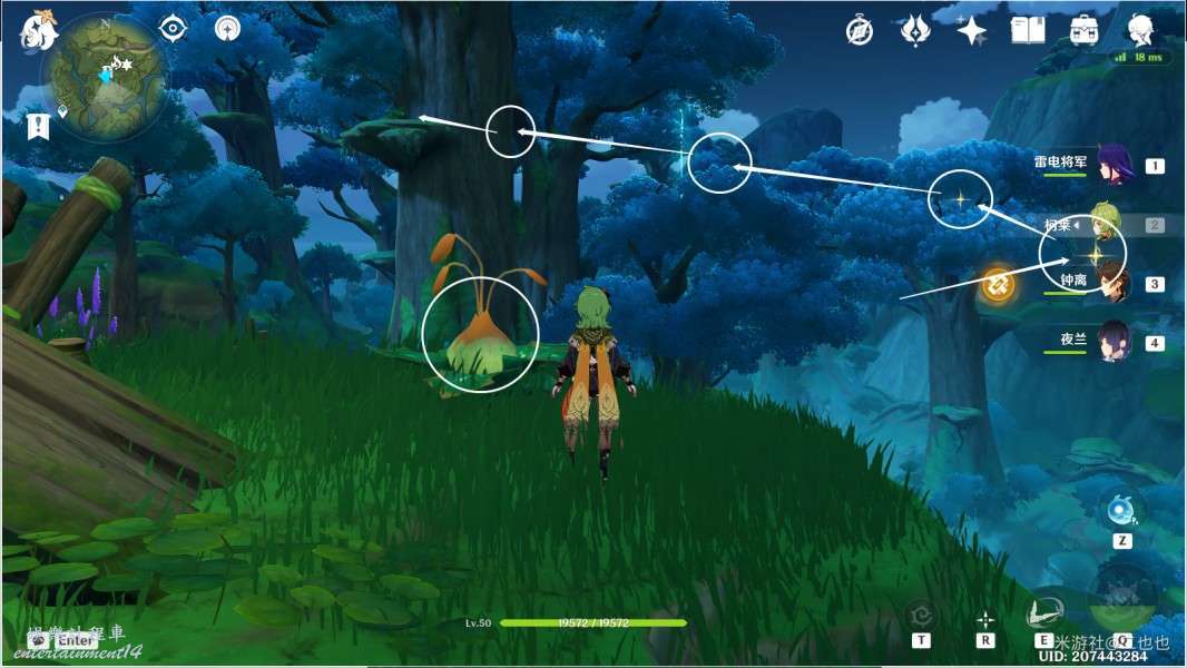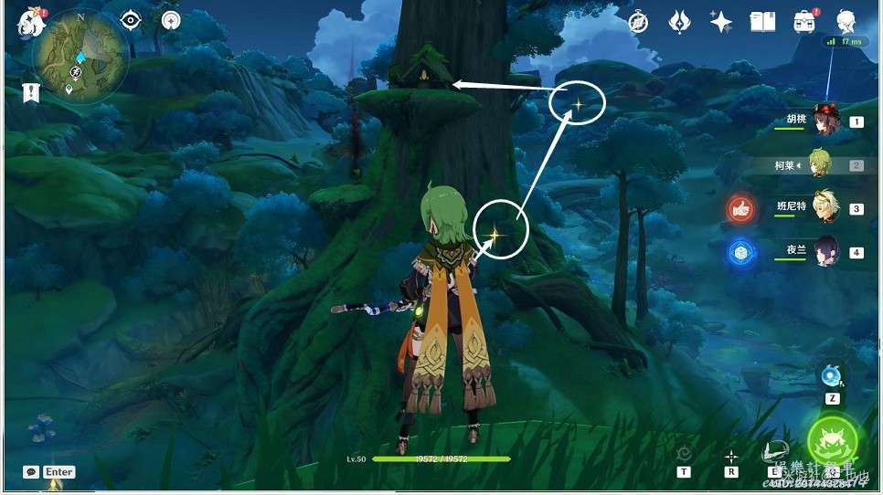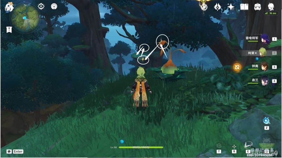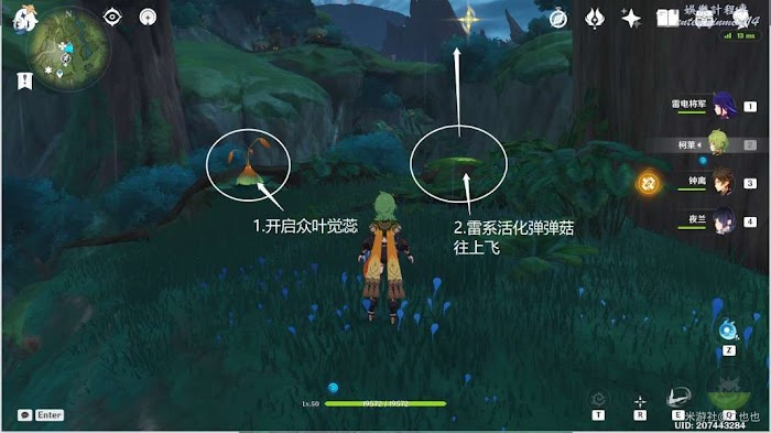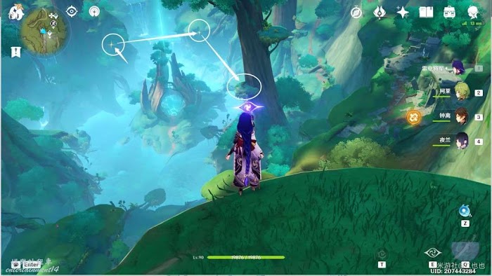 圖中除了傳送錨點之外,都是使用柯萊蓄力射擊眾葉覺蕊,利用四葉印飛