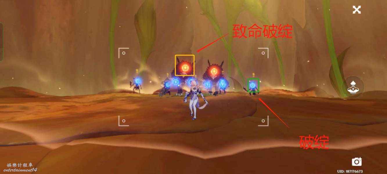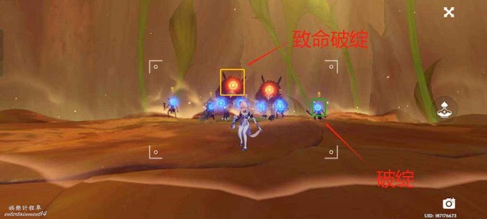 在使用溢神試劑時,建議來到場地的邊緣,擴大相機視野,來取得更多破綻與致命破綻,以拿到較高分數。