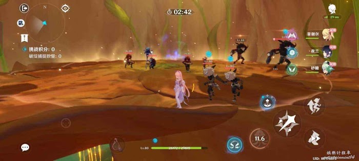 本關的預選隊伍為:心海、菲謝爾、夜蘭和砂糖。建議以夜蘭、菲謝爾、砂糖依次分別釋放元素爆發與元素戰技之後,切換為心海進行站場輸出,從而達到進行感電、擴散與聚怪的目的,提高戰鬥效率。