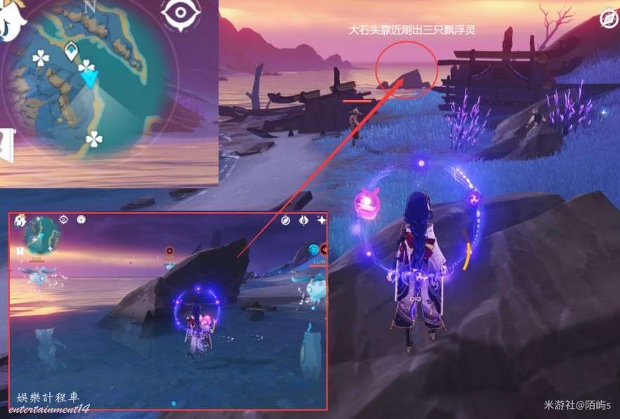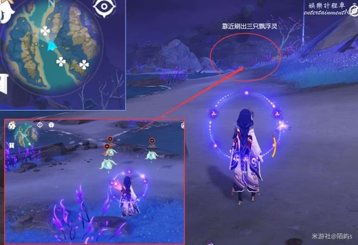 清完飄浮靈朝著地圖的東北方向看,在那個大石板上,靠近就會刷新三隻飄浮靈。