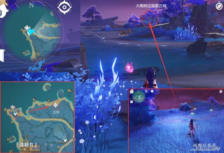 清完朝著地圖的北方向跑,靠近前面的那棵樹會刷出三隻飄浮靈。