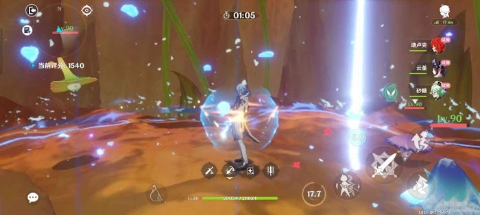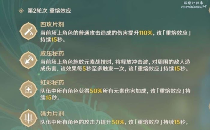 在隊伍的操作手法上,建議先使用「重熔效應」,用根據所獲得增益,如果是普攻增益,使用雲瑾的元素爆發與元素戰技、神裡綾人的元素戰技與平A;如果為重擊增益,則用荒瀧一鬥或煙緋輸出;如果為攻速增益,則用綾人以第一種方式輸出。注意本關先破岩盾作戰效率會有較大提升。