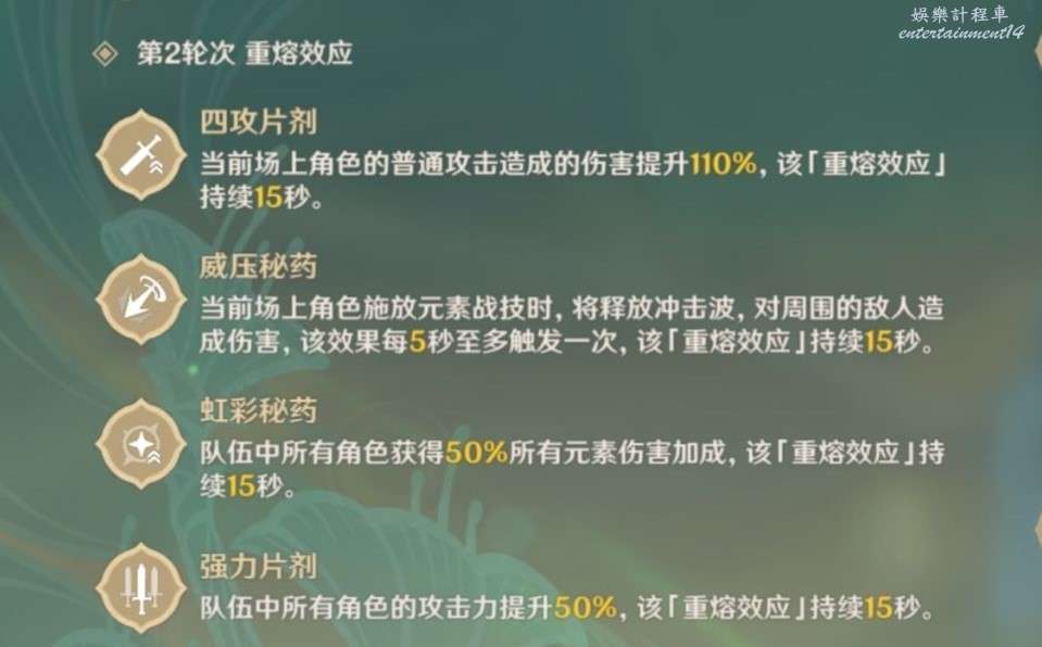 在戰鬥之中,可以使用「重熔裝置」啟動「重熔效應」,可在短時間內隨機獲得一至多種增益。