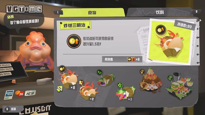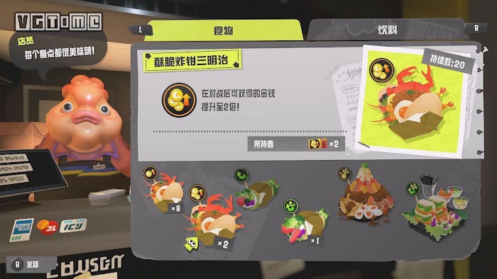 在對戰大廳處,可以找到菇頭魚 NPC 購買三明治套餐。不同的套餐擁有不同的加成效果。吃完套餐後就能在接下來的 20 局比賽中享受加錢效果。