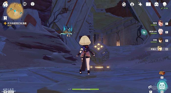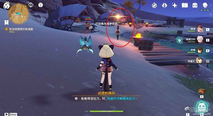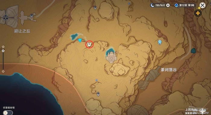 原神 (Genshin Impact) 上風蝕地遺跡開門暗語獲取方法 29 9 月 2022-09-29 廣告 作者:瑞破受氣包 來源:遊民星空 遺跡位置如下圖所示。 首先我們需要跟蹤一名巡邏的傭兵獲得暗語(頭上會有閃光標記)。同時要注意避開其他衛兵的視線,機制與之前版本中的跟蹤任務類似,被傭兵注意到後會出現一個眼睛標記的計量表,注意在計量表充滿之前離開傭兵仇恨範圍即可。說到暗語時會變成藍字標記,記住暗語。 回到遺跡門前,與機關互動,選擇正確的暗語即可開啟遺跡,成功開啟可解鎖成就【請說暗語,然後進入】。