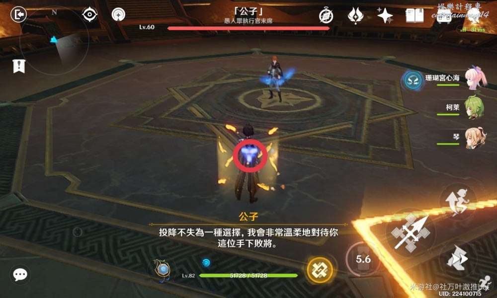 “隊伍中所有角色都不被「公子」標記的後續攻擊命中的情況下,擊敗「公子」。”