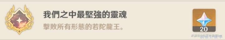 若陀龍王擁有火冰水雷這四種元素狀態,每週會刷新,分別是雷水、冰火、水冰、火雷這四個形態,連續打四周就可以了,獲得成就「我們之中最堅強的靈魂」。