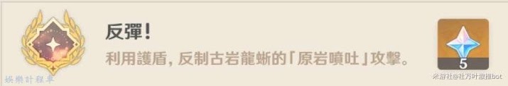 “利用同種元素類型或岩元素的護盾,反制古岩龍蜥的「原岩噴吐」攻擊,並造成大量傷害。”