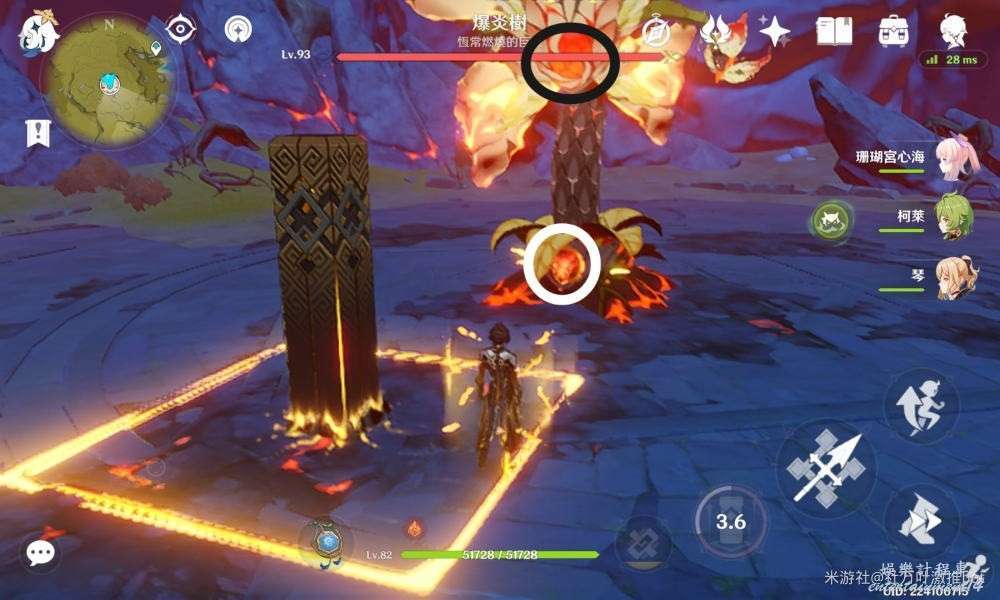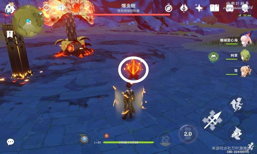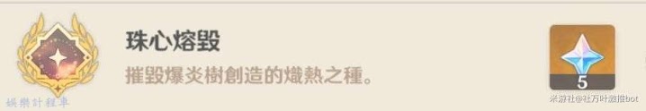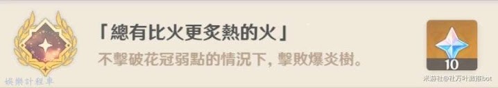與爆炎樹戰鬥時,它會創造出一個花苞,這個就是熾熱之種,只要我們使用元素力將它摧毀,便可獲得成就「珠心熔毀」。
