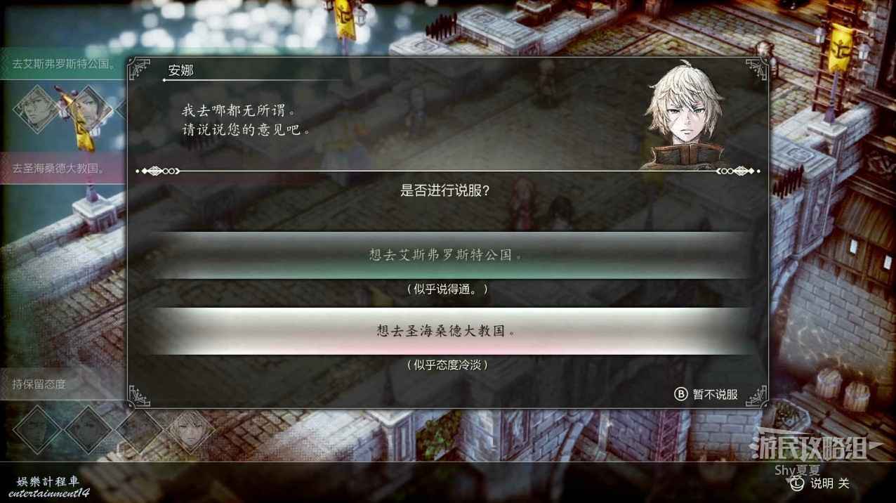 如果【去聖海桑德大教國】同樣需要勸說4名角色,羅蘭選擇3;艾拉德爾選擇3;修艾特選擇3;安娜選擇1。