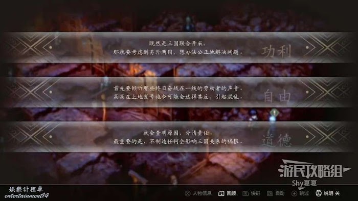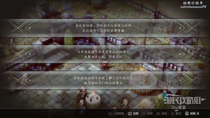 進入戰鬥後進行對話選擇,這裡就涉及到了信念值的概念