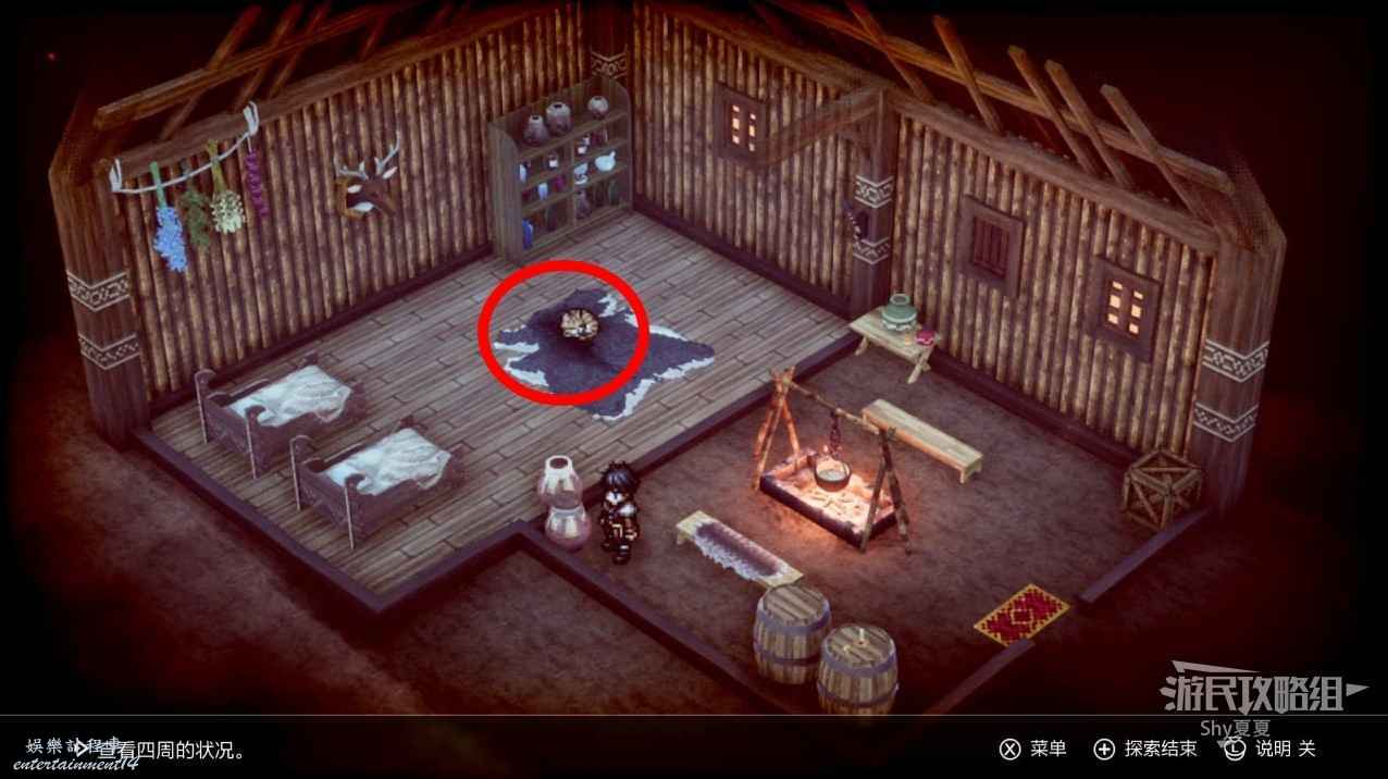 有盾牌的房子內,牆角的書架上,獲得【諾澤利亞遊記第11卷】。