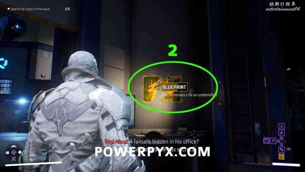 線索2:在金庫內的左側,掃描牆上被撕毀的藍圖。