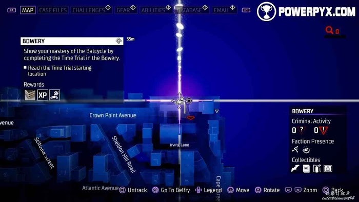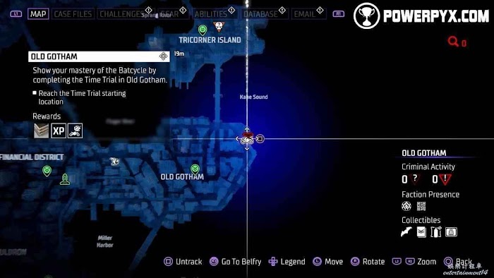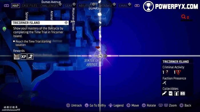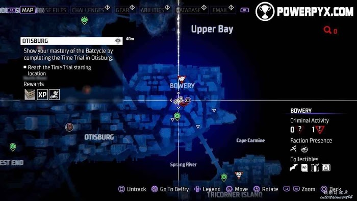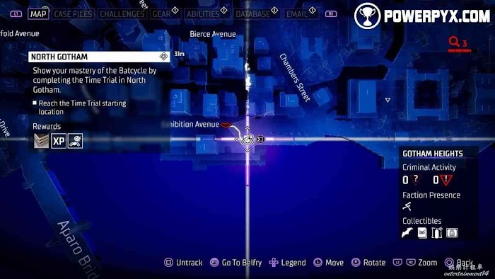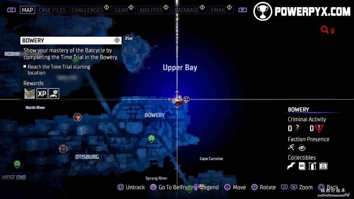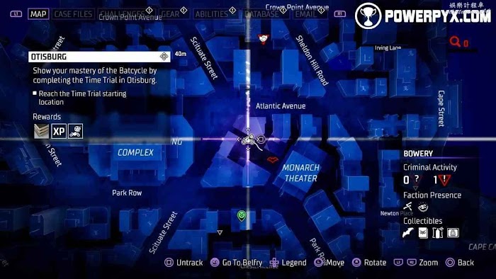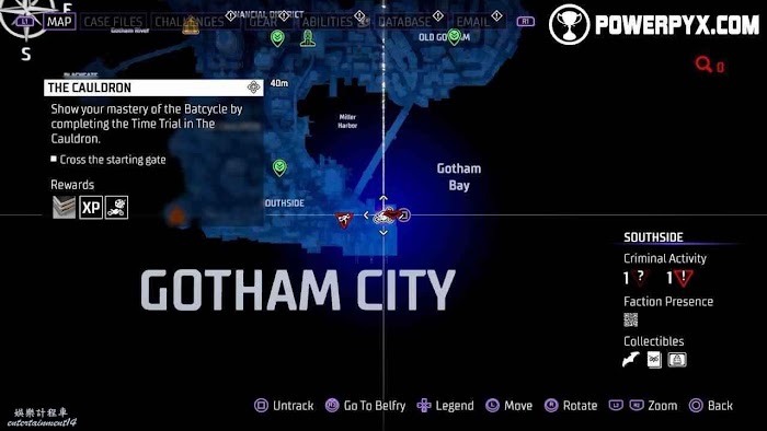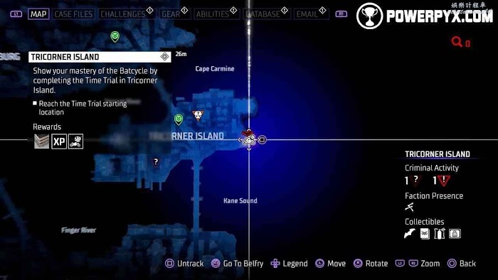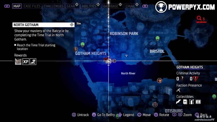 需要注意的是,如果沒有阻止哈莉·奎因的第一個犯罪事件(位於羅賓遜公園的紅色標記),那麼第一個蝙蝠摩托競速挑戰(位於北哥譚)就無法觸發。完成之後即可刷新第一個蝙蝠摩托競速挑戰。
