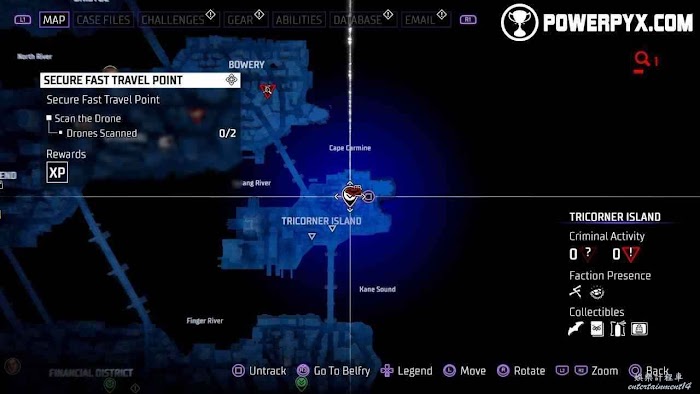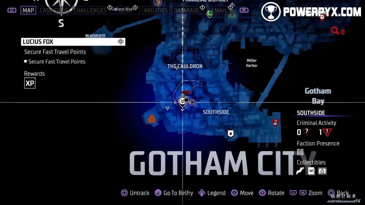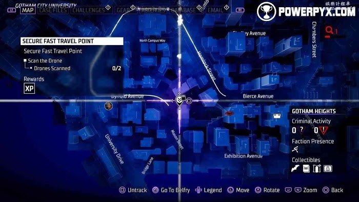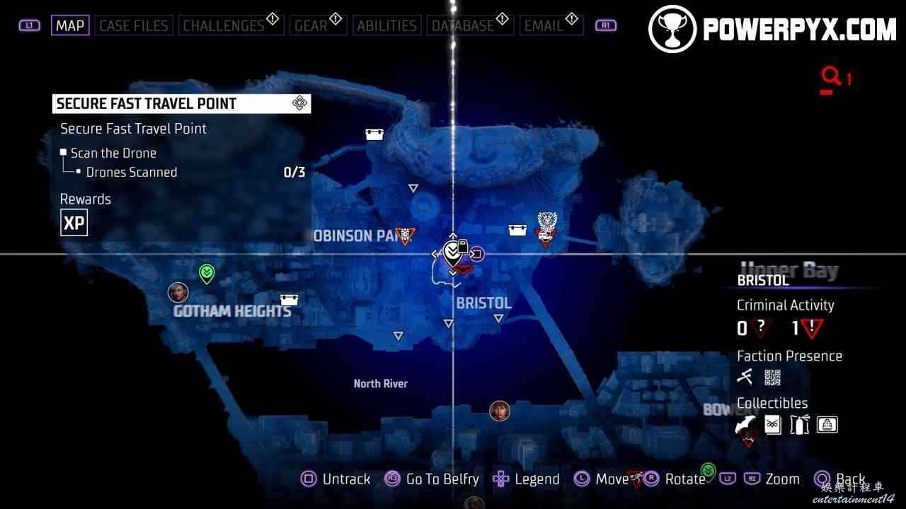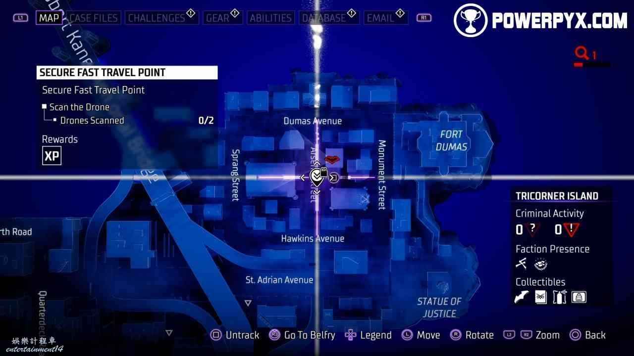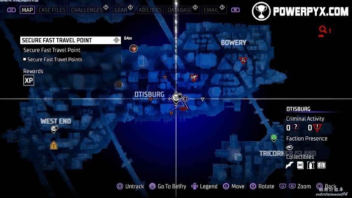 傳送點在主線案件2.1中與盧修斯·福克斯交談後即可開啟,第一個標記在金融區,第二個在南區。解鎖第二個之後,剩下的五個會以白色圖示標記在地圖上,解鎖之後會變為綠色。