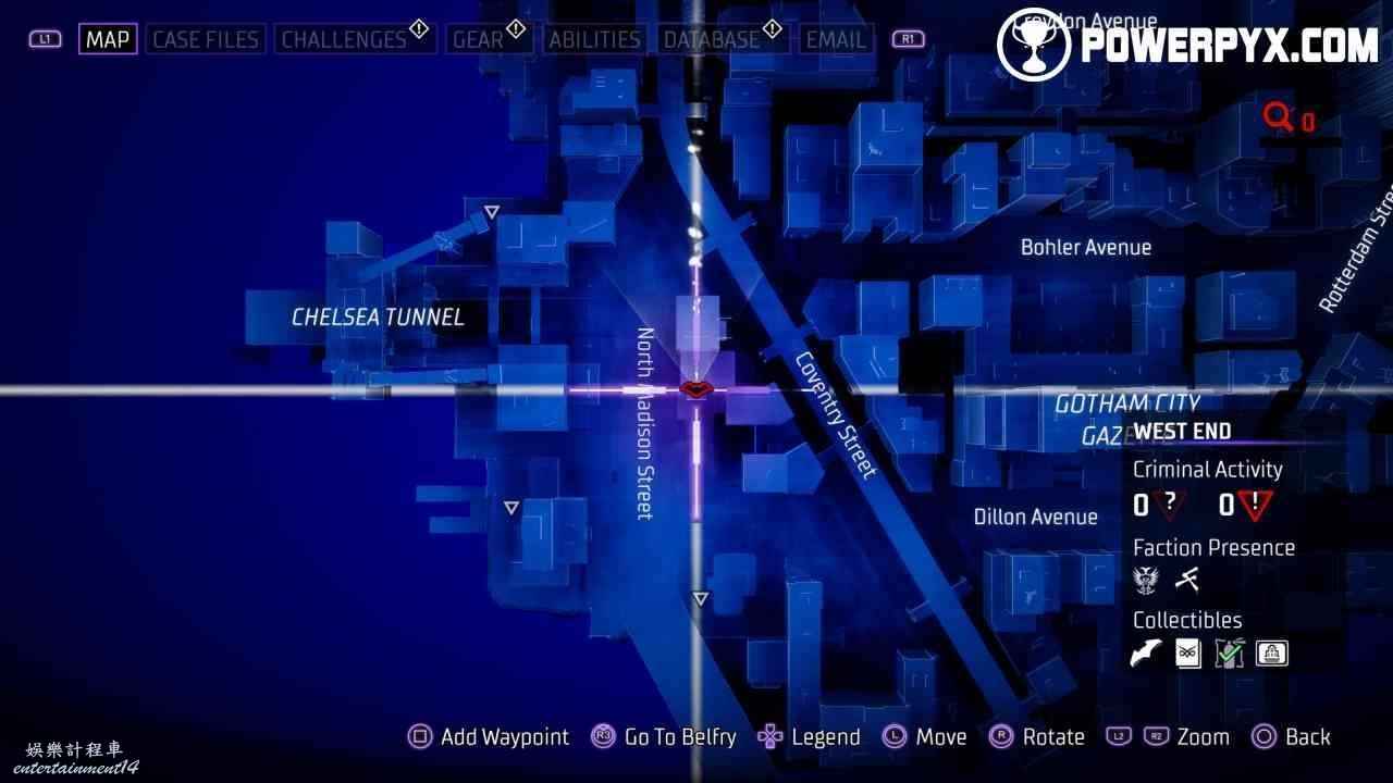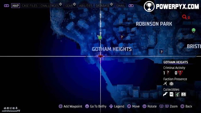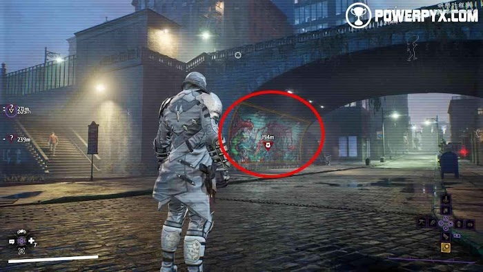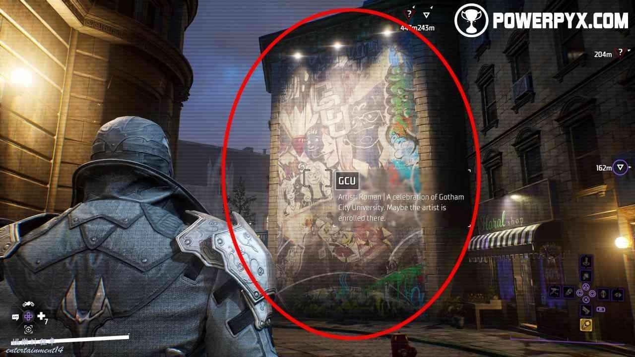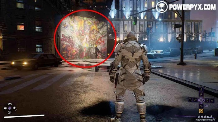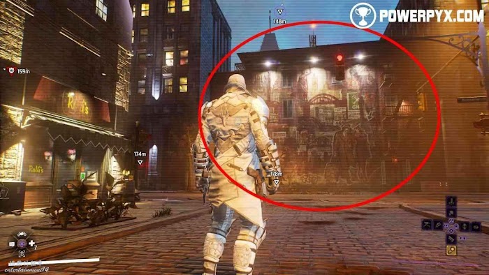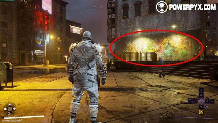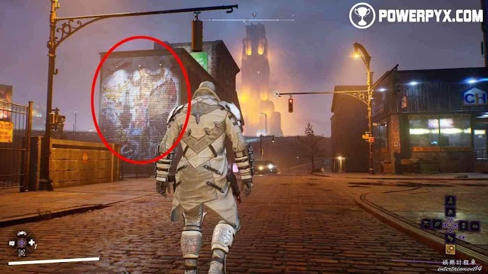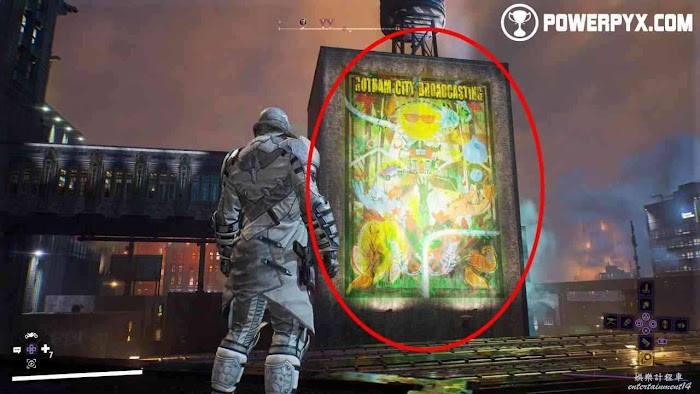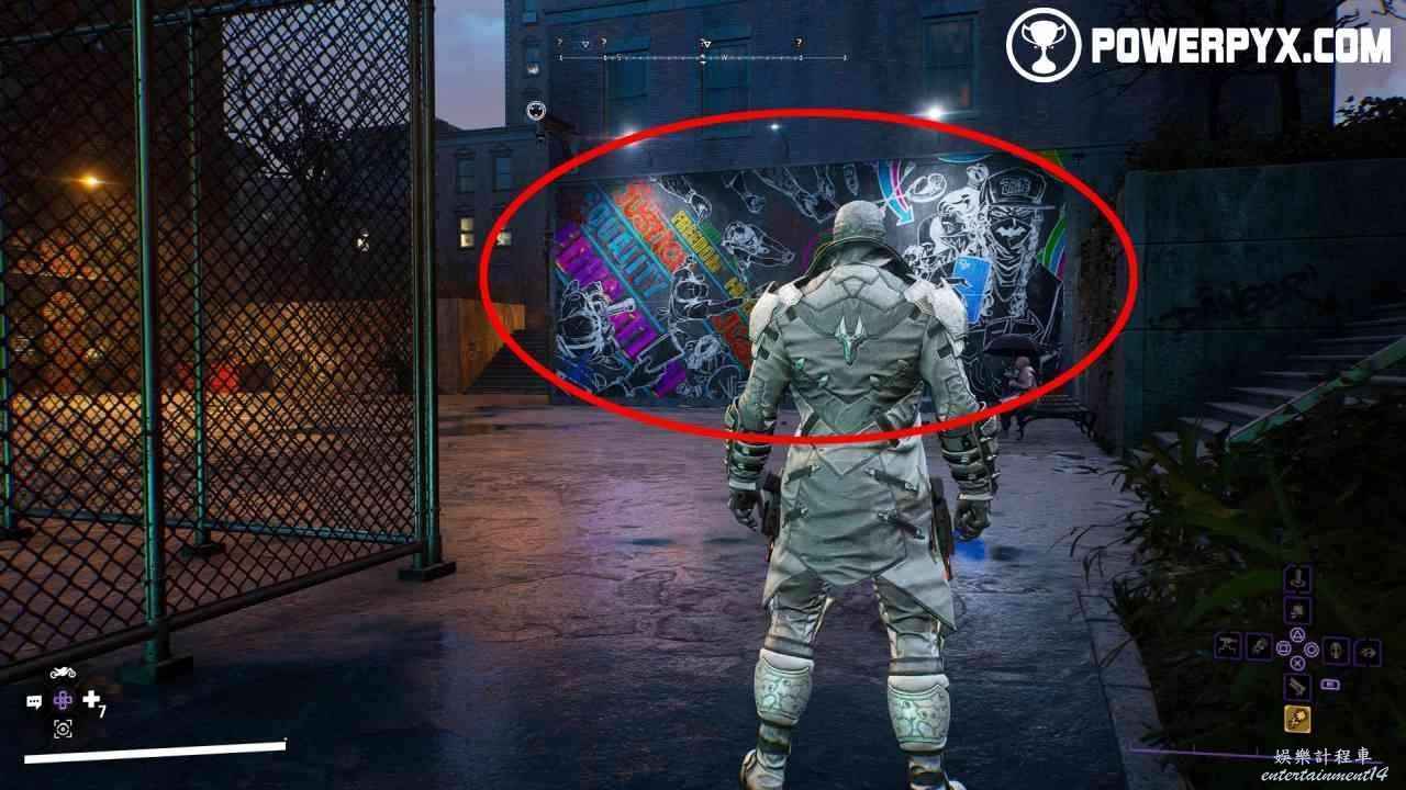 蒂姆的哥譚市街頭藝術項目的所有壁畫都可以在開放世界自由探索時獲得,無關主線進度,且不用擔心漏掉,通關主線後也可以獲得。壁畫大多都是占滿建築物整面牆的塗鴉繪畫,按【十字鍵-下】掃描壁畫會出現橙色輪廓,靠近時就很容易看到。按住【十字鍵-下】瞄準壁畫,掃描大約2秒左右即可收集。本文會按照自南向北的順序列出所有壁畫位置。