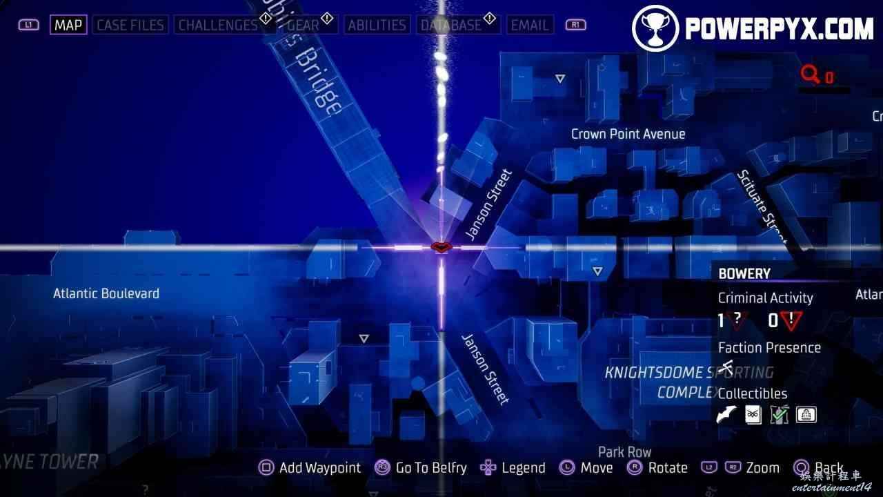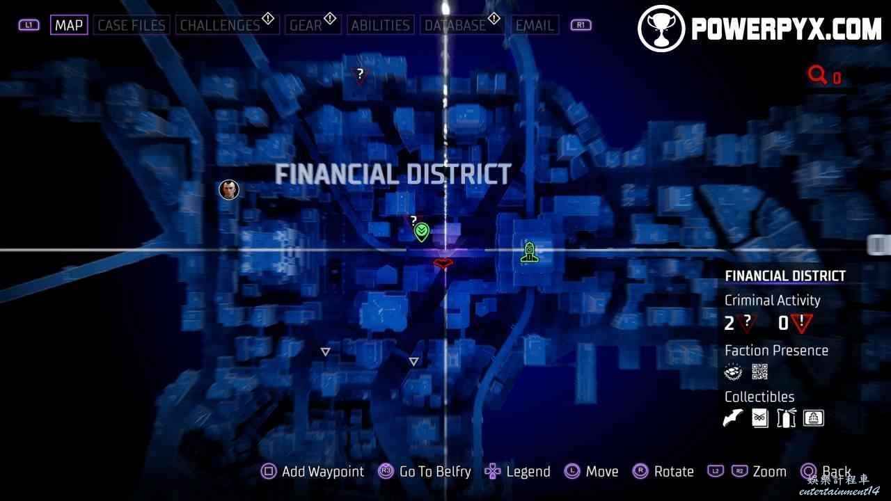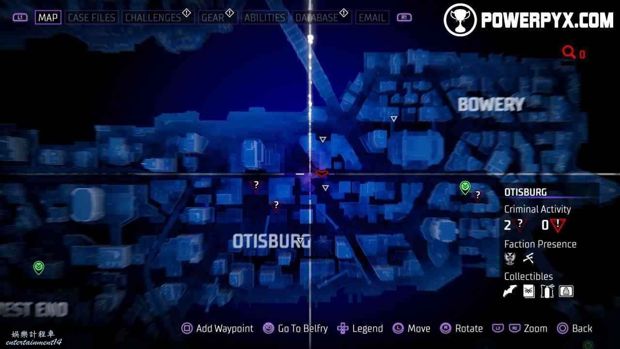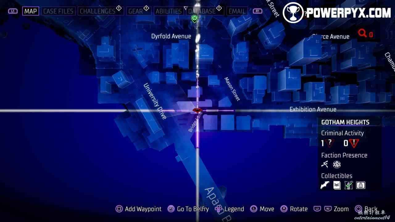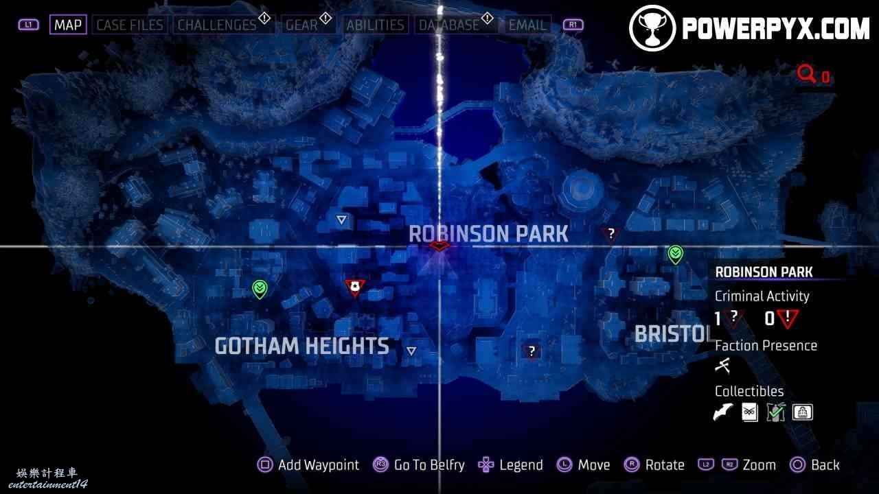 蒂姆的哥譚市街頭藝術項目的所有壁畫都可以在開放世界自由探索時獲得,無關主線進度,且不用擔心漏掉,通關主線後也可以獲得。壁畫大多都是占滿建築物整面牆的塗鴉繪畫,按【十字鍵-下】掃描壁畫會出現橙色輪廓,靠近時就很容易看到。按住【十字鍵-下】瞄準壁畫,掃描大約2秒左右即可收集。本文會按照自南向北的順序列出所有壁畫位置。