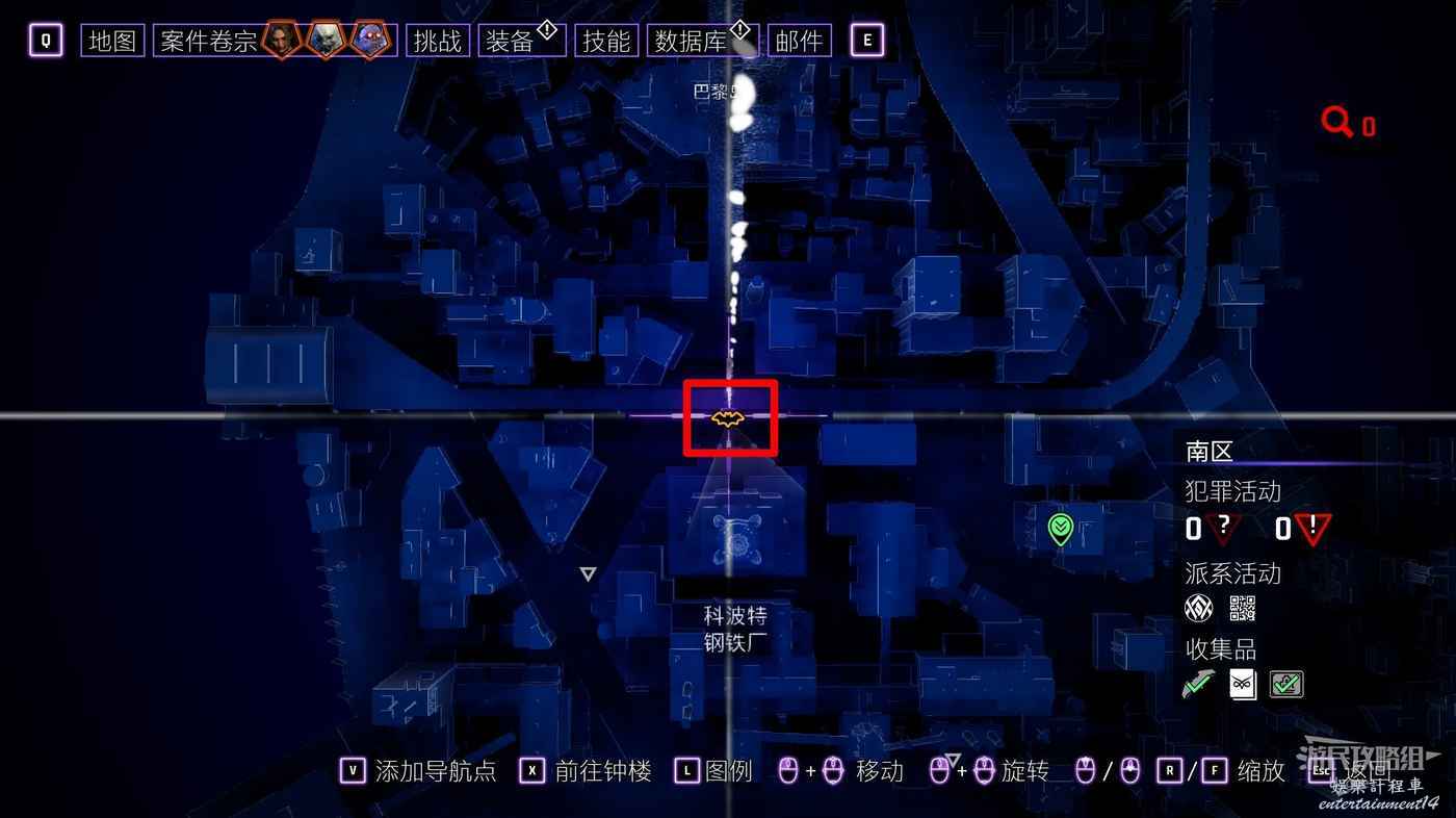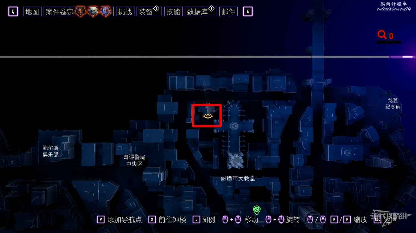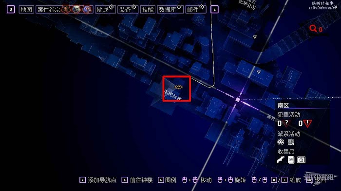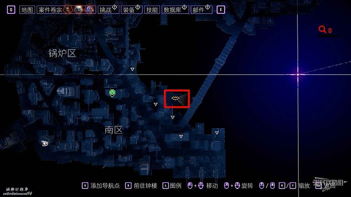 第5個蝙蝠鏢位於南區中心區域的下圖所示位置。