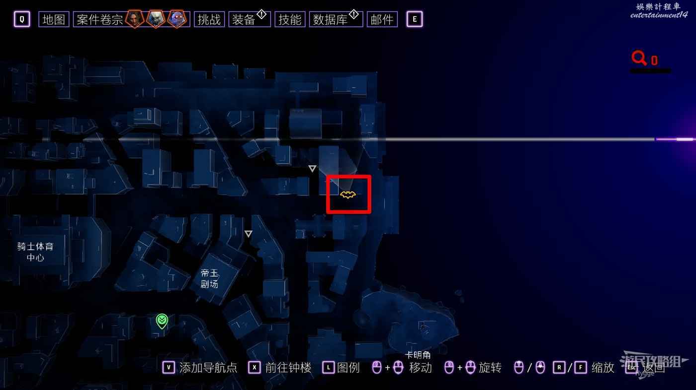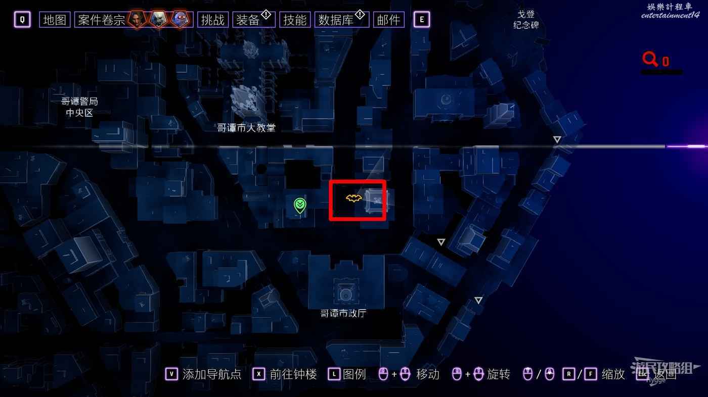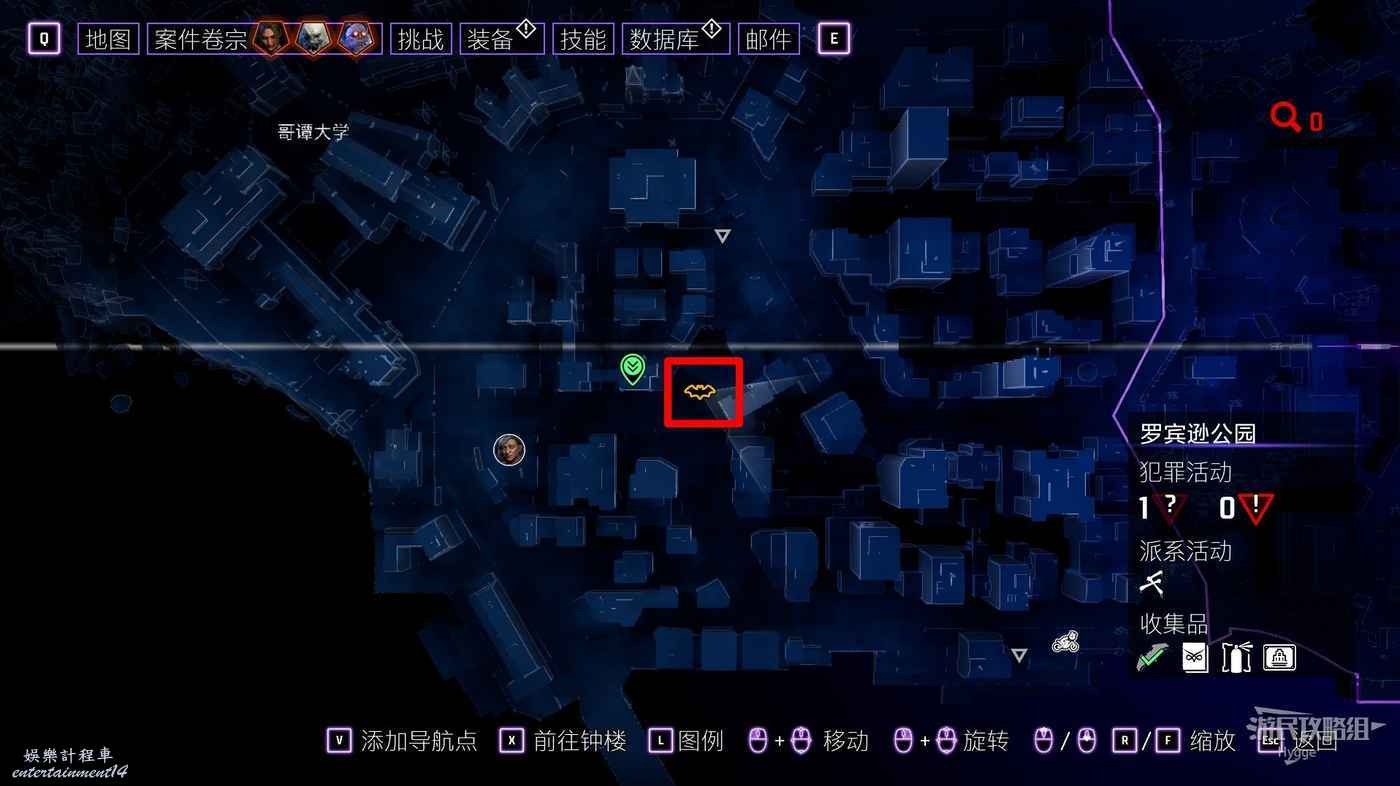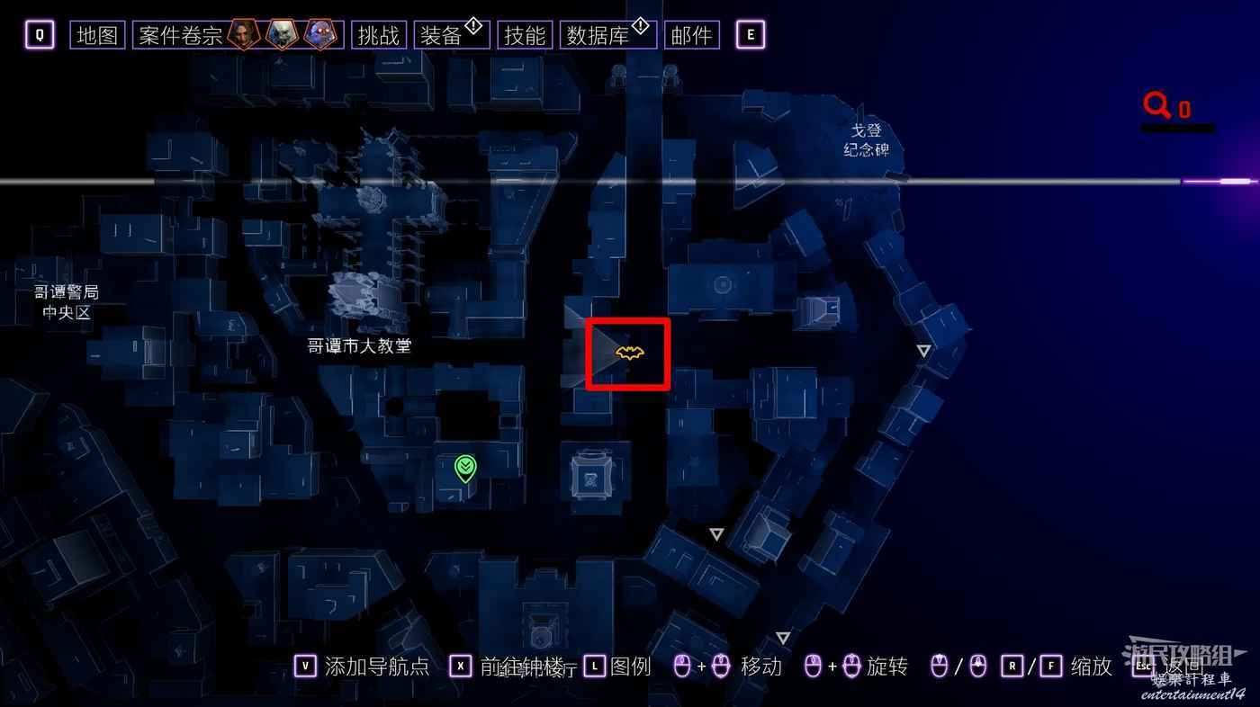 第3個蝙蝠鏢位於公園區域西南側的建築上。