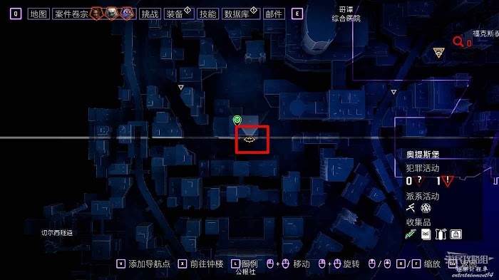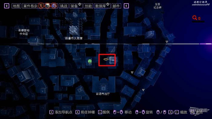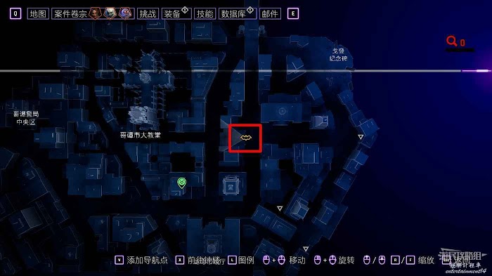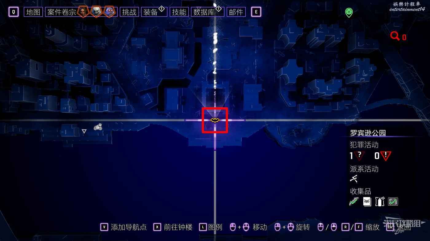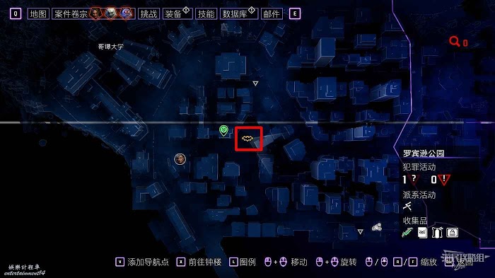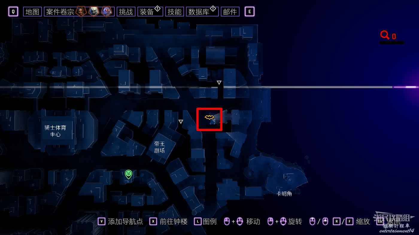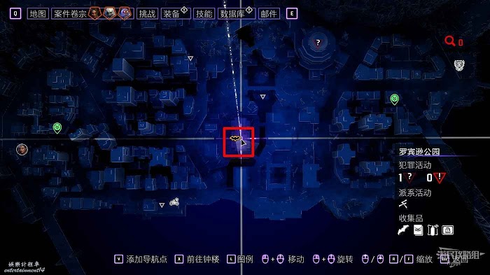 第3個蝙蝠鏢位於公園區域西南側的建築上。