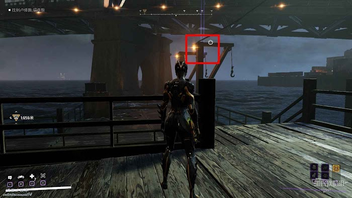 在碼頭最東側的大型起重機上可以找到該蝙蝠鏢。