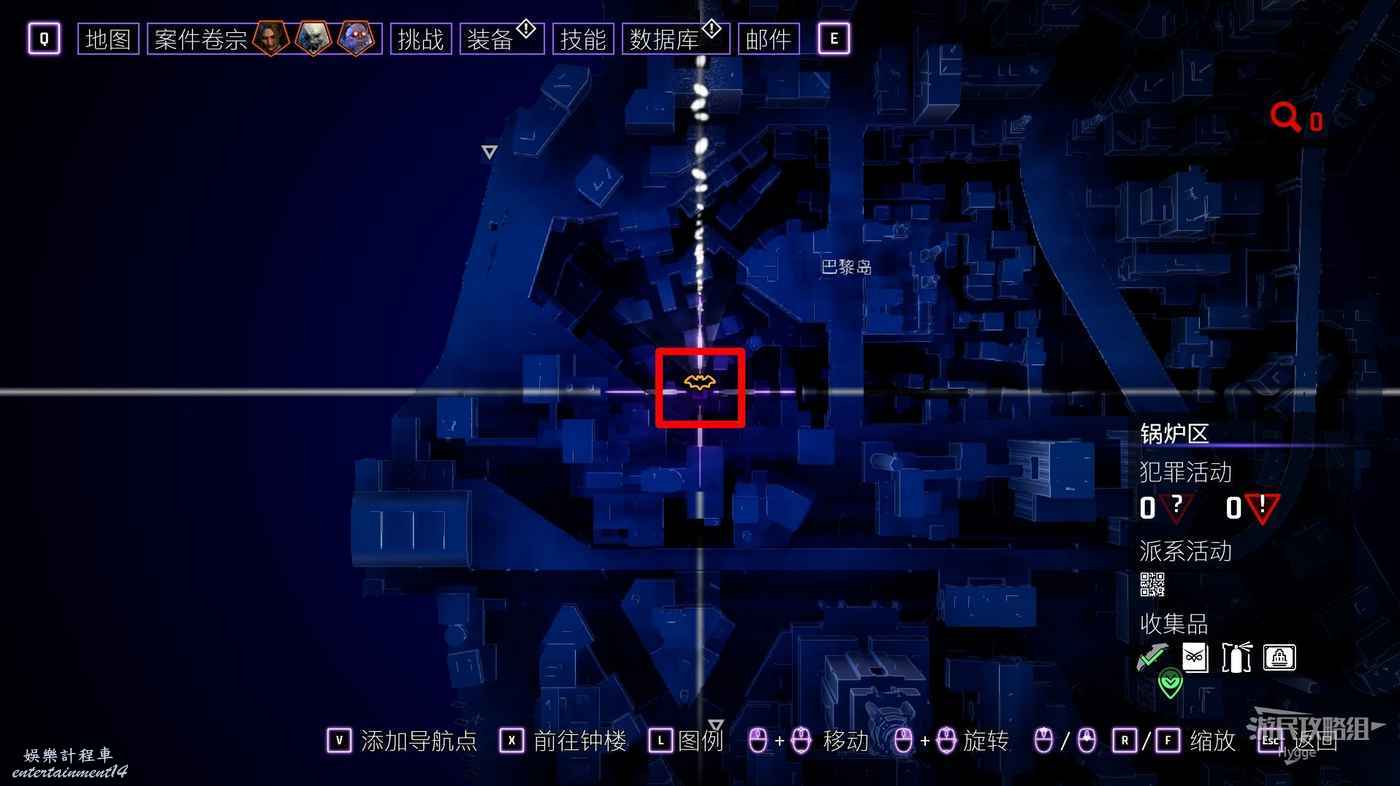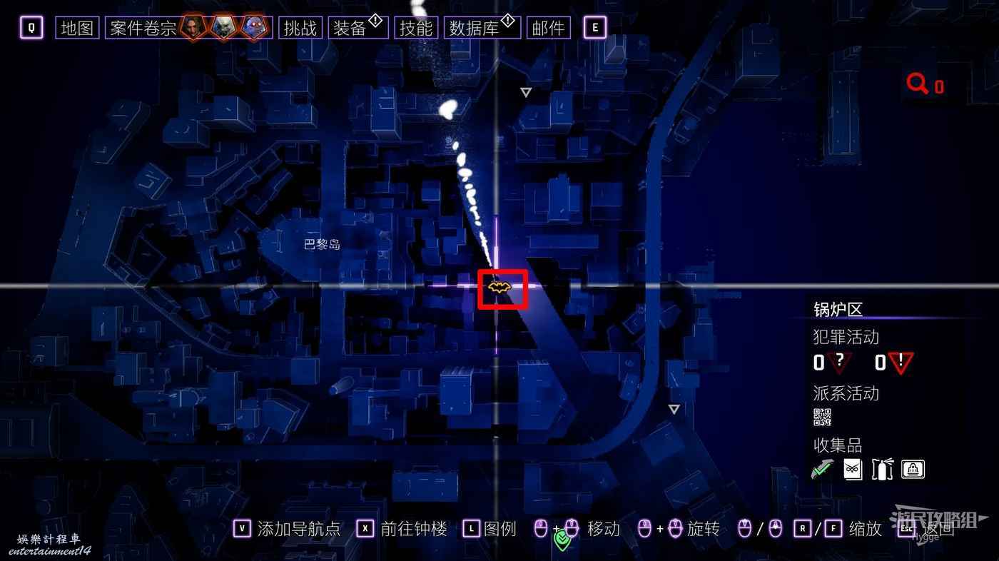 第1個蝙蝠鏢位於鍋爐區南側的大樓頂部。