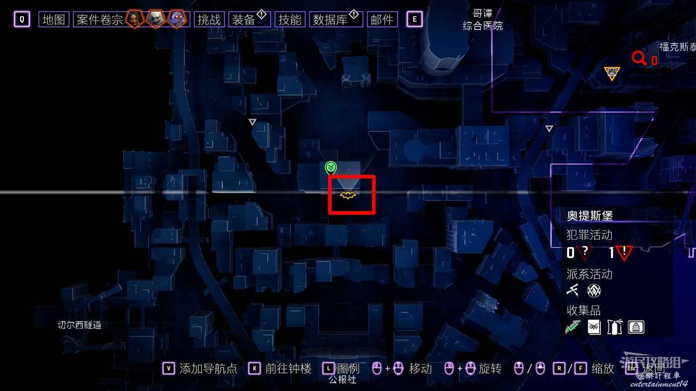 第4個蝙蝠鏢位於老哥譚東側的大樓頂部。