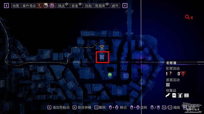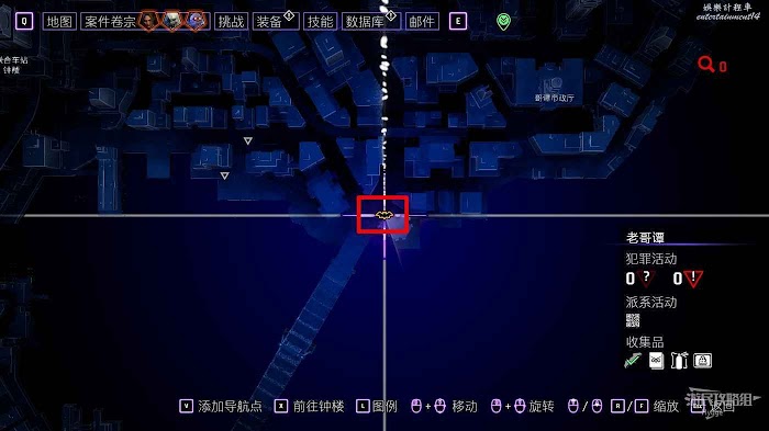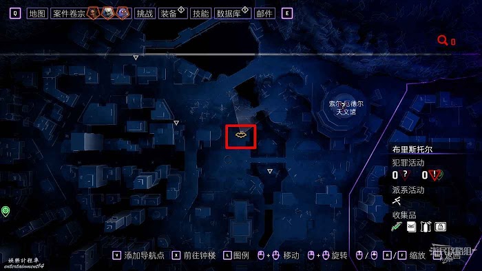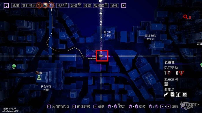 第1個蝙蝠鏢位於鮑爾斯俱樂部南側大樓的頂部。