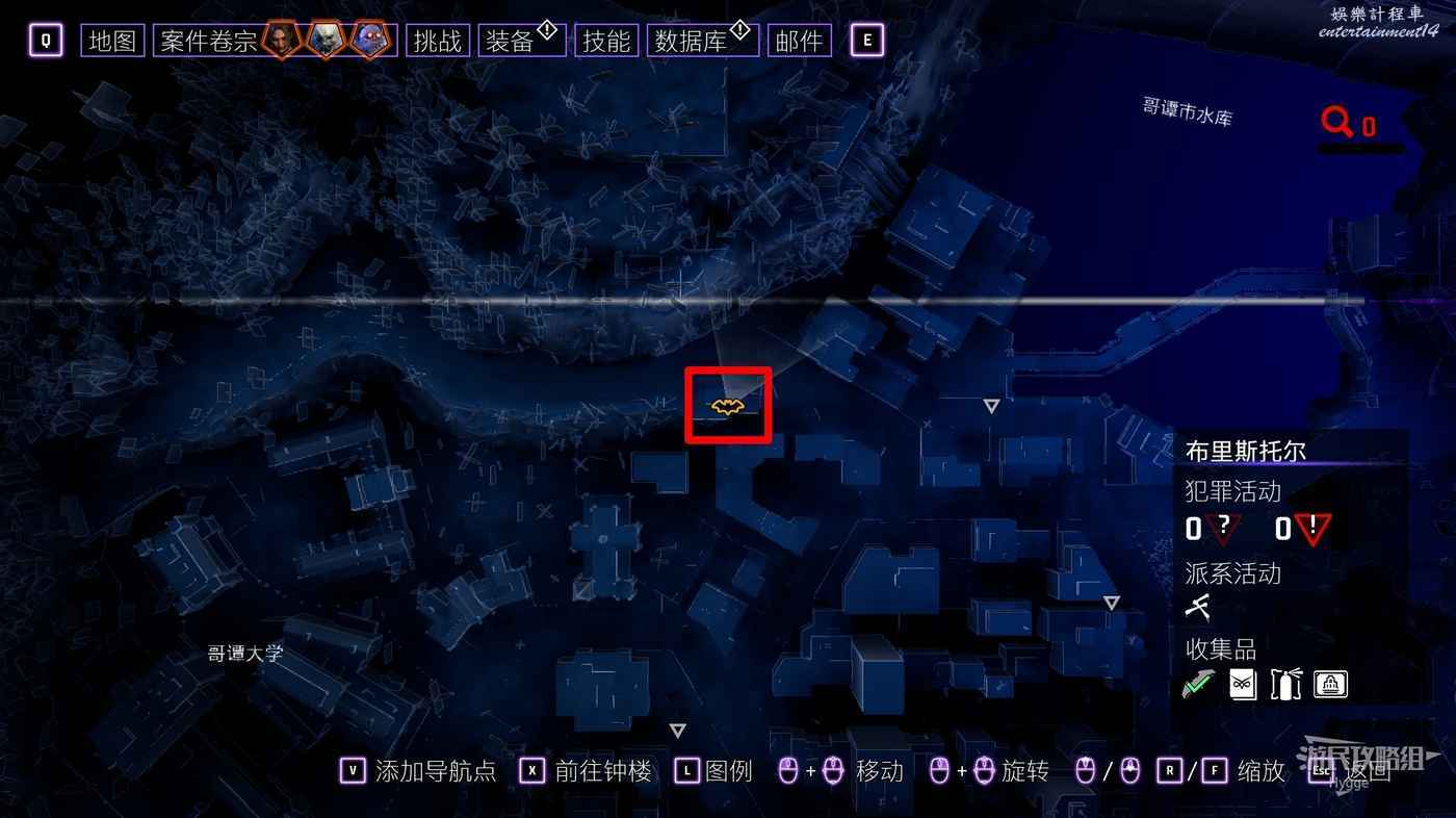 第1個蝙蝠鏢位於區域北側的水庫附近。
