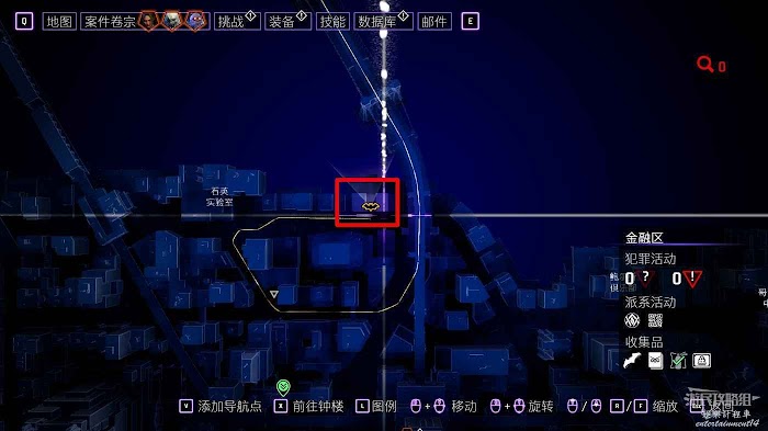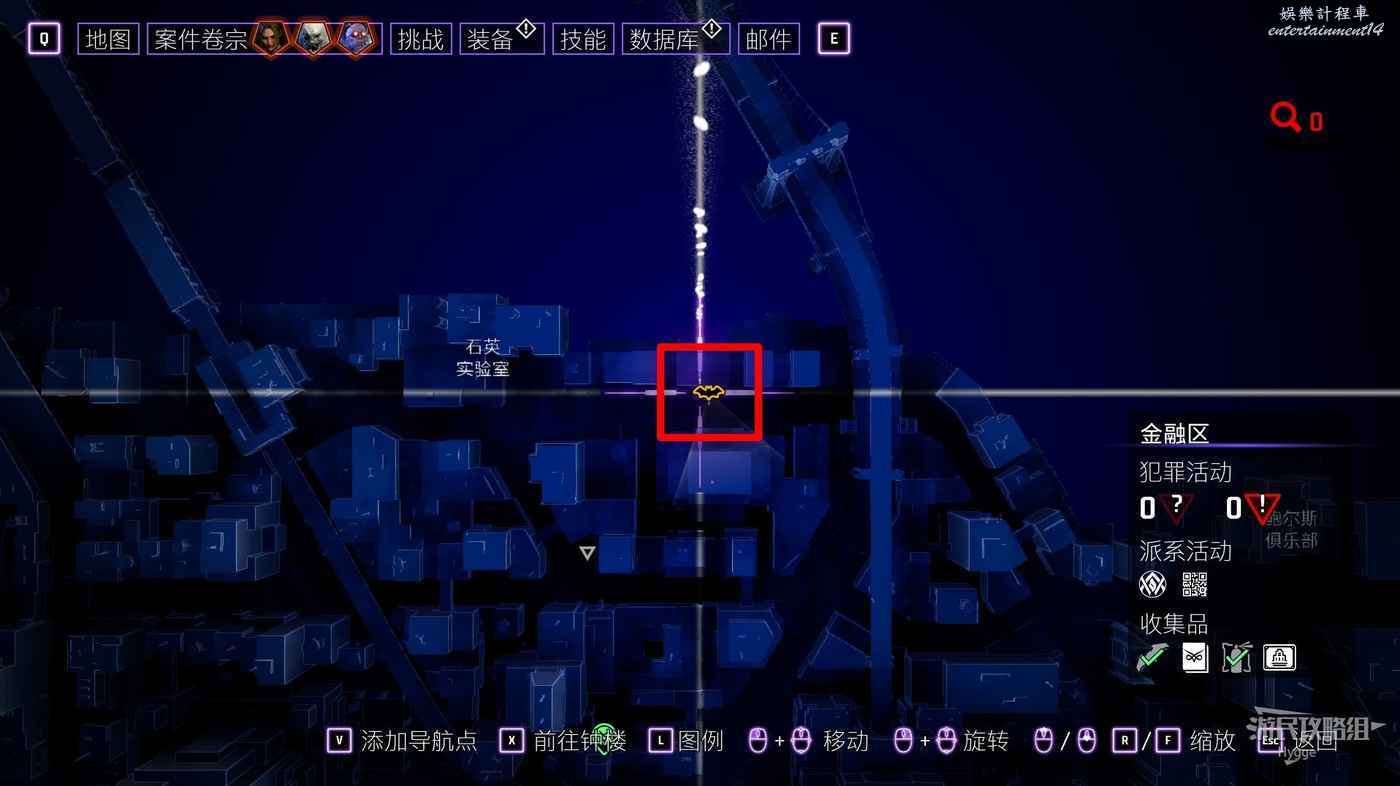 第5個蝙蝠鏢位於金融區北部岸邊的石英實驗室屋頂。