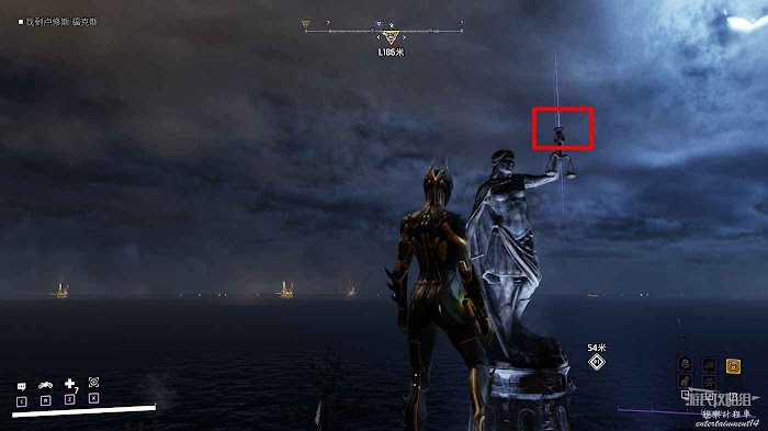 第3個蝙蝠鏢位於燈塔西側的小樓屋頂上。