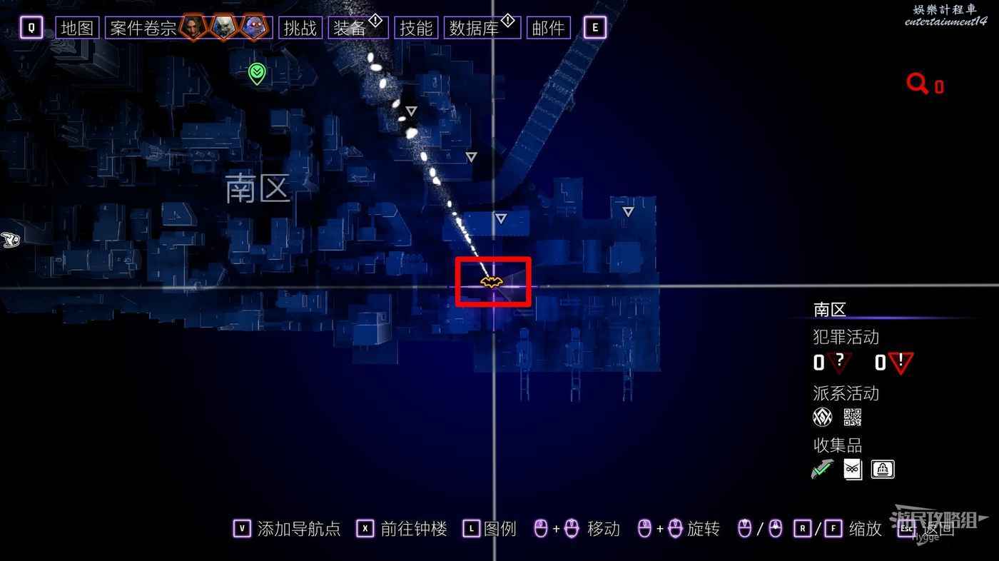 第1個蝙蝠鏢位於南區的下圖所示位置。