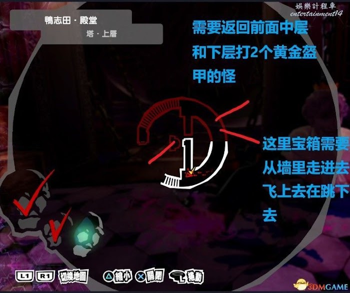 女神異聞錄 5 皇家版 鴨志田殿堂攻略 24 10 月 2022-10-24 廣告 作者:獵貓人老賈 來源:3DM (地圖上紅線不加備註就是寶箱,有備註的仔細看文字提示。) 在4.18日這天一次性拿完所有寶箱和欲石。 難度建議safety或者easy。 使用dlc的伊邪納岐大神平推。 找不到路的就按L1用暗影之眼會顯示機關或者路。 鴨志田1F 鴨志田2F 鴨志田3F 鴨志田塔下層 鴨志田塔中層 鴨志田塔上層 鴨志田王座之間 鴨志田隱藏房間 鴨志田欲石2走法