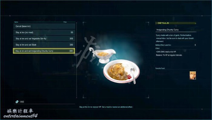 旅店:住宿可以恢復所有HP,進食可以獲得額外效果。