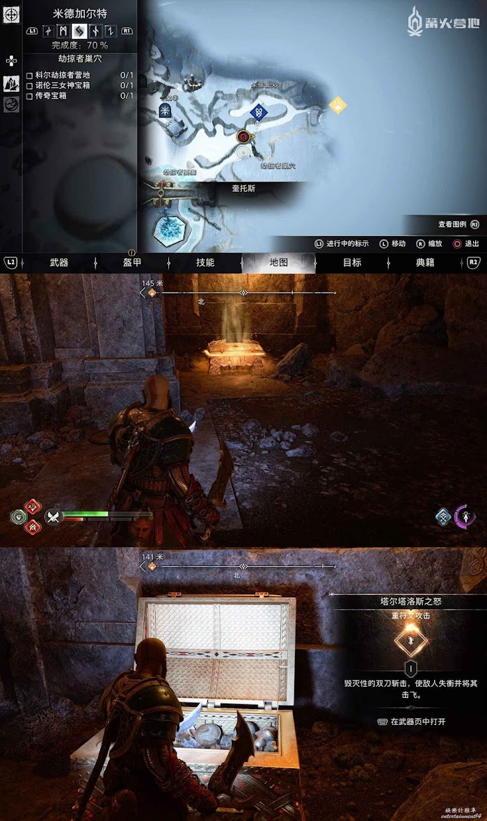 在「米德加爾特 – 劫掠者巢穴」,可以找到「傳奇寶箱」,可以獲得「重符文攻擊 – 塔爾塔羅斯之怒」。