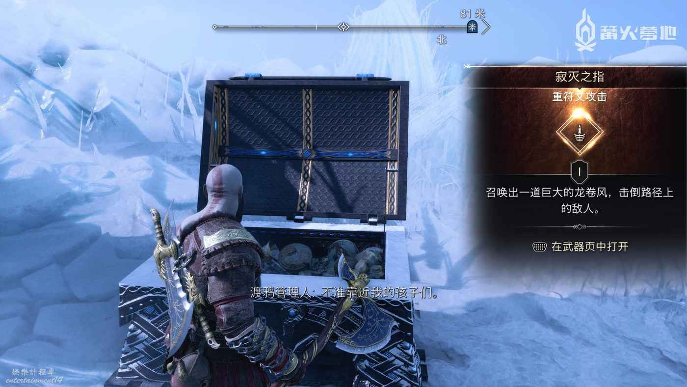在「尼福爾海姆 – 渡鴉樹」,收集渡鴉開啟「傳奇寶箱」可以獲得「重符文攻擊 – 寂滅之指」。