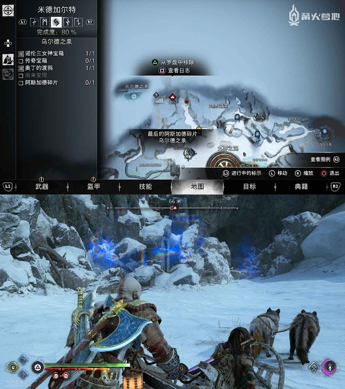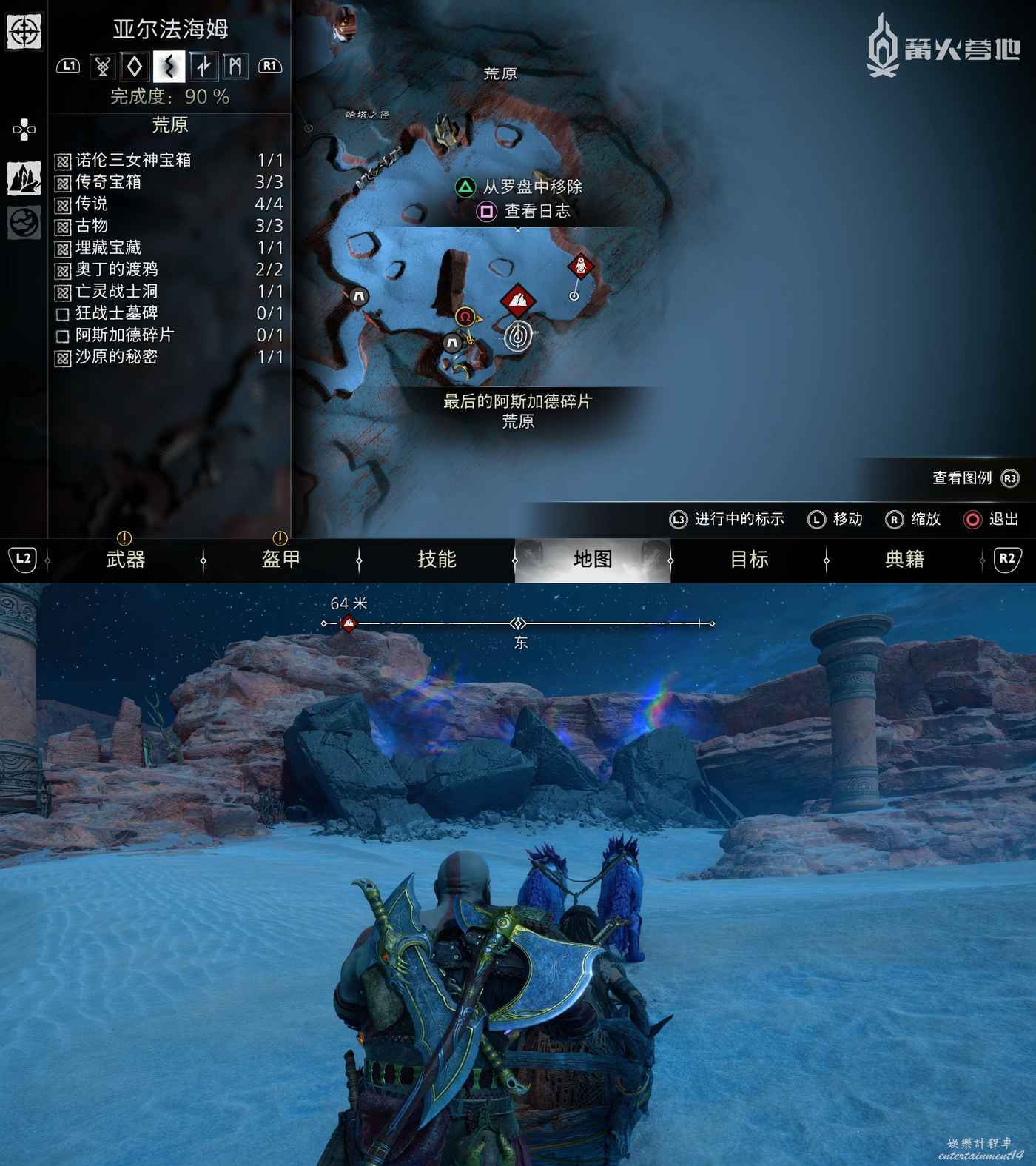 完成《戰神 諸神黃昏》主線故事後,會自動開啟支線任務「最後的阿斯加德碎片」,共有十個碎片散落在了地圖上,其實就是要消滅對應碎片位置處出現的英靈戰士,並且部分碎片旁邊會出現一個新的寶箱等待開啟,每個碎片附近的獎勵不固定。