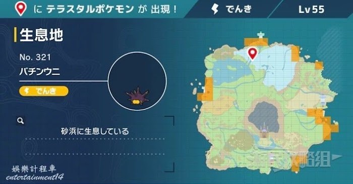 啪嚓海膽位於下圖所示位置,也會出現在固定的太晶巢穴中,但建議尋找棲息地的沙灘附近,用太晶啪嚓海膽交換不合適。