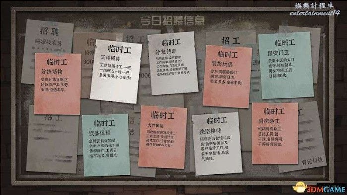 然而在遊戲剛開始,你往往只能幹一些簡單粗糙的工作,工資較低,並且比較勞累,還容易有各種安全隱患和患病可能。