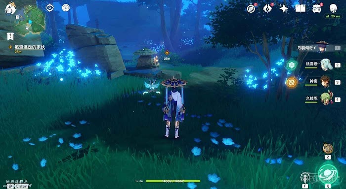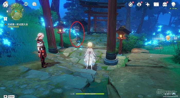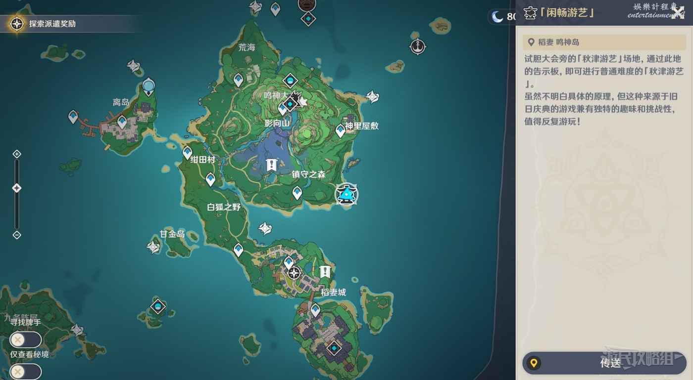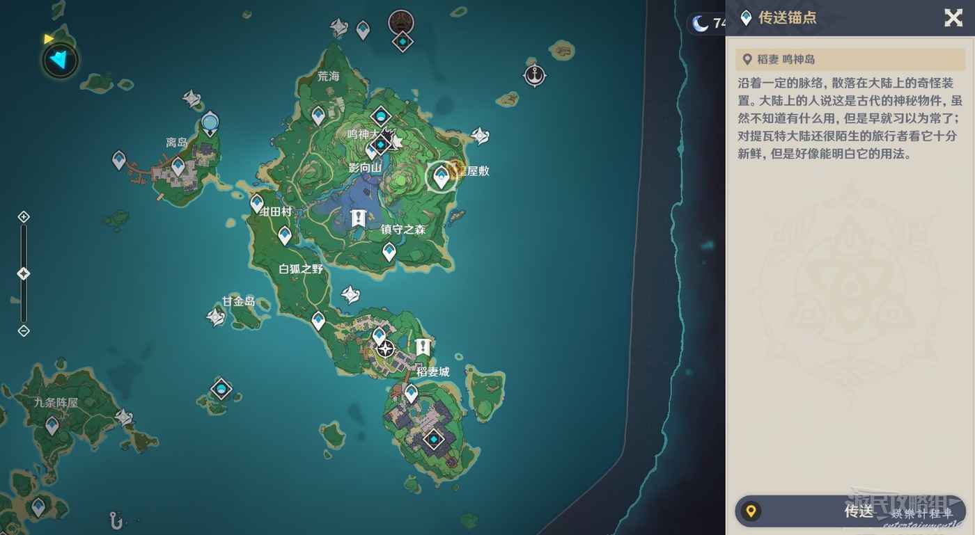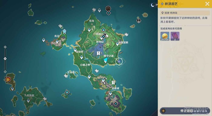 活動開啟後自動觸發,如果沒有出現追蹤目標的話可以按V鍵開啟任務介面手動追蹤。傳送到稻妻的神裡屋敷傳送錨點。