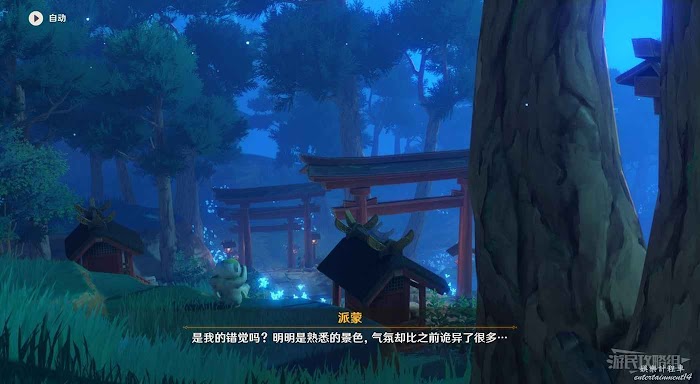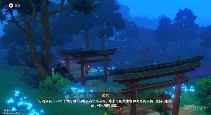 結束對話後,先根據方向牌指示的方向前進(注意不是右轉,是沿著鳥居往山下走)。這裡選擇的萬葉搭檔,在往下走的路上萬葉會講鬼故事,感興趣的小夥伴也可以聽完再往前走。