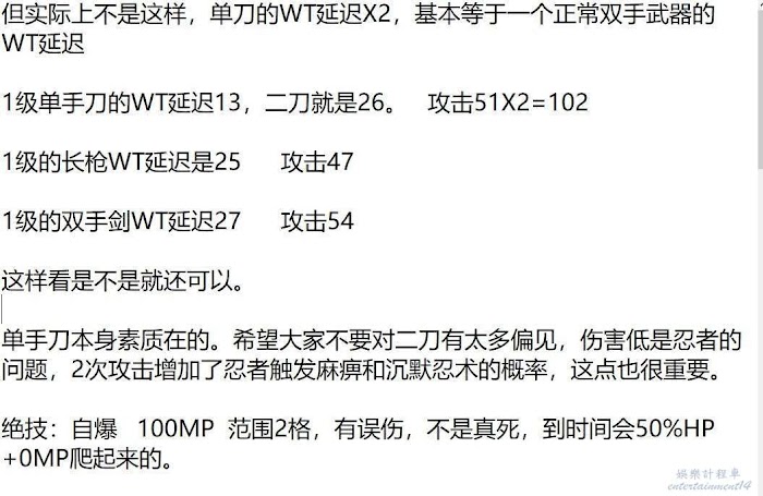 簡單明瞭的數值職業,本身雙手刀的武器白值就是很誇張的,我舉個例子你們就有概念了。